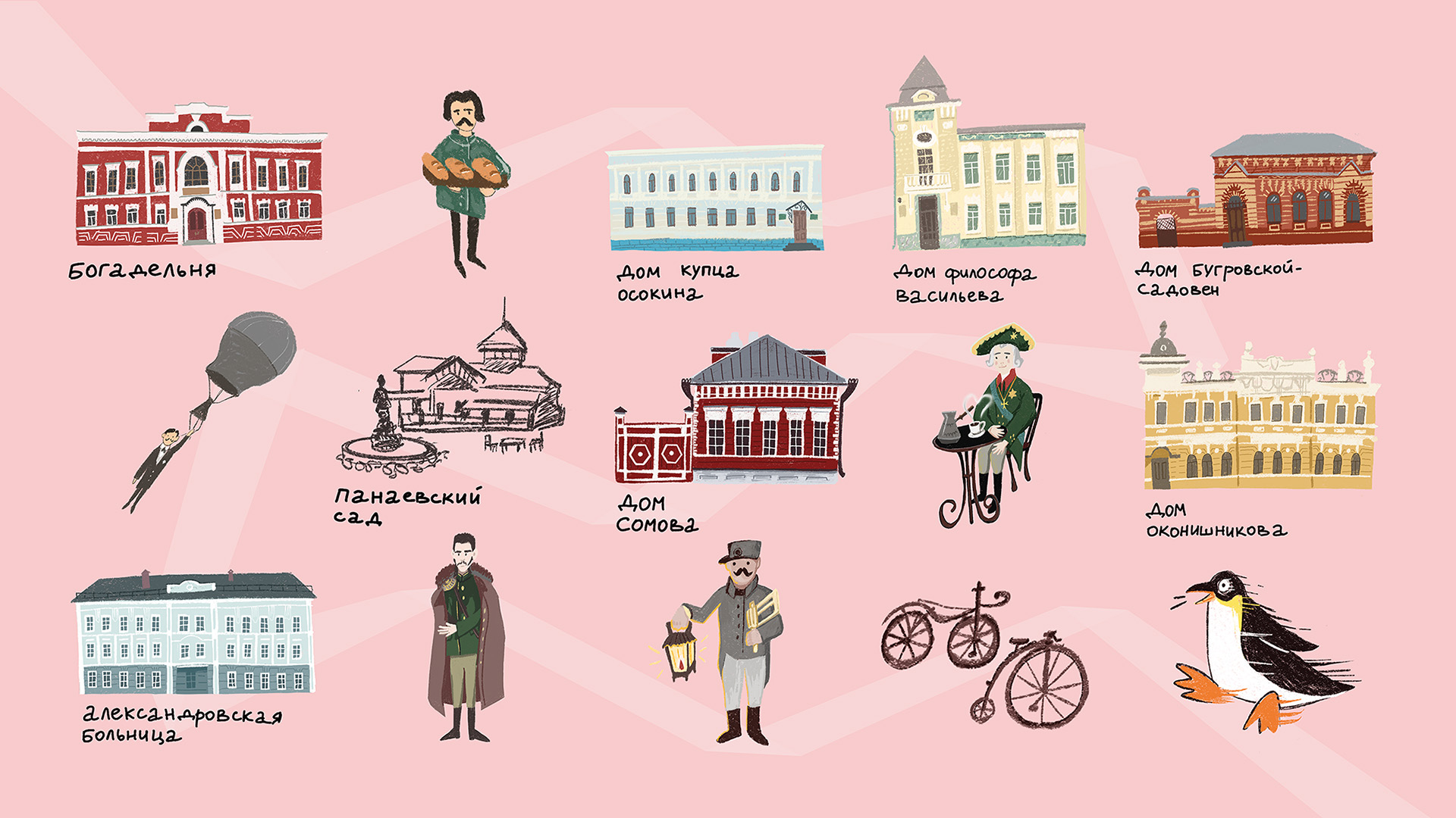 Иллюстрации для краеведческого проекта «Околотки на перемотки»