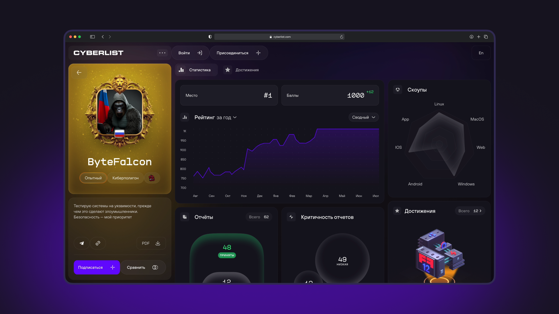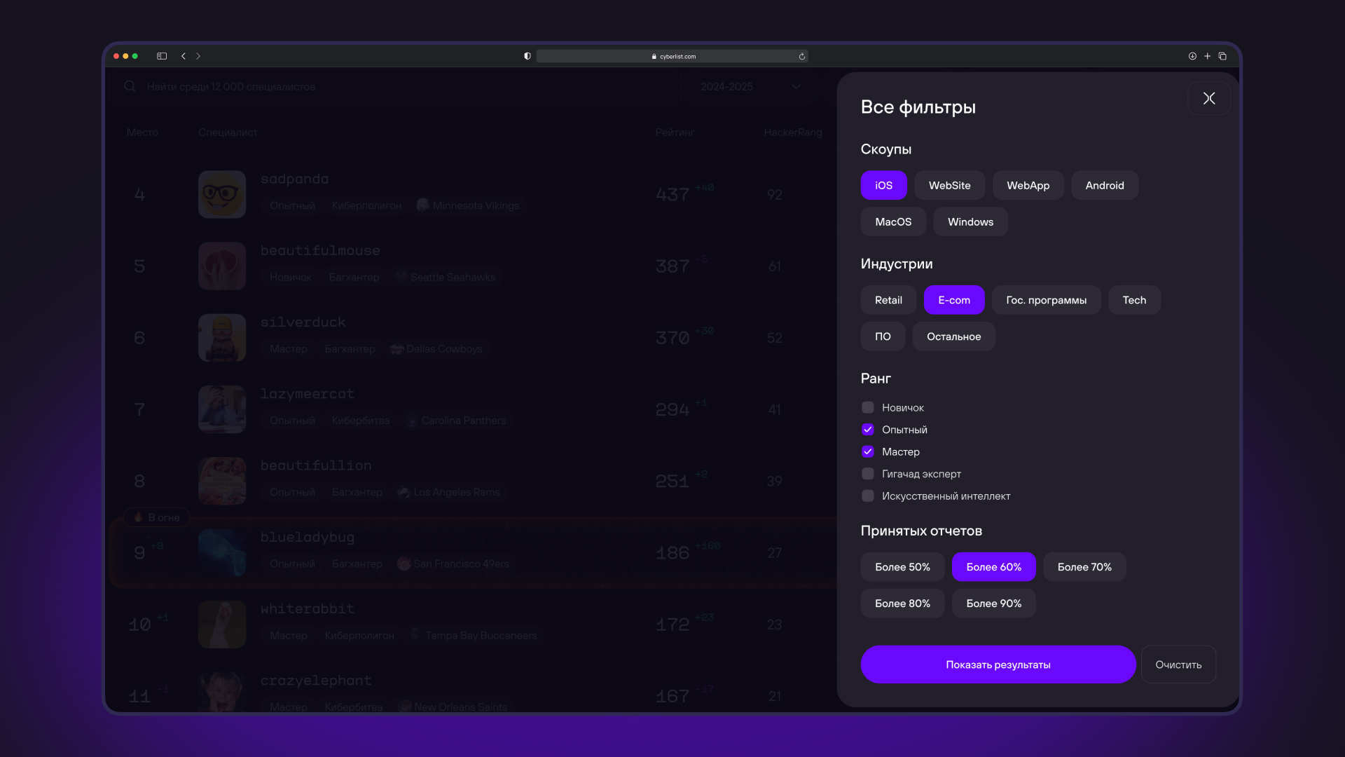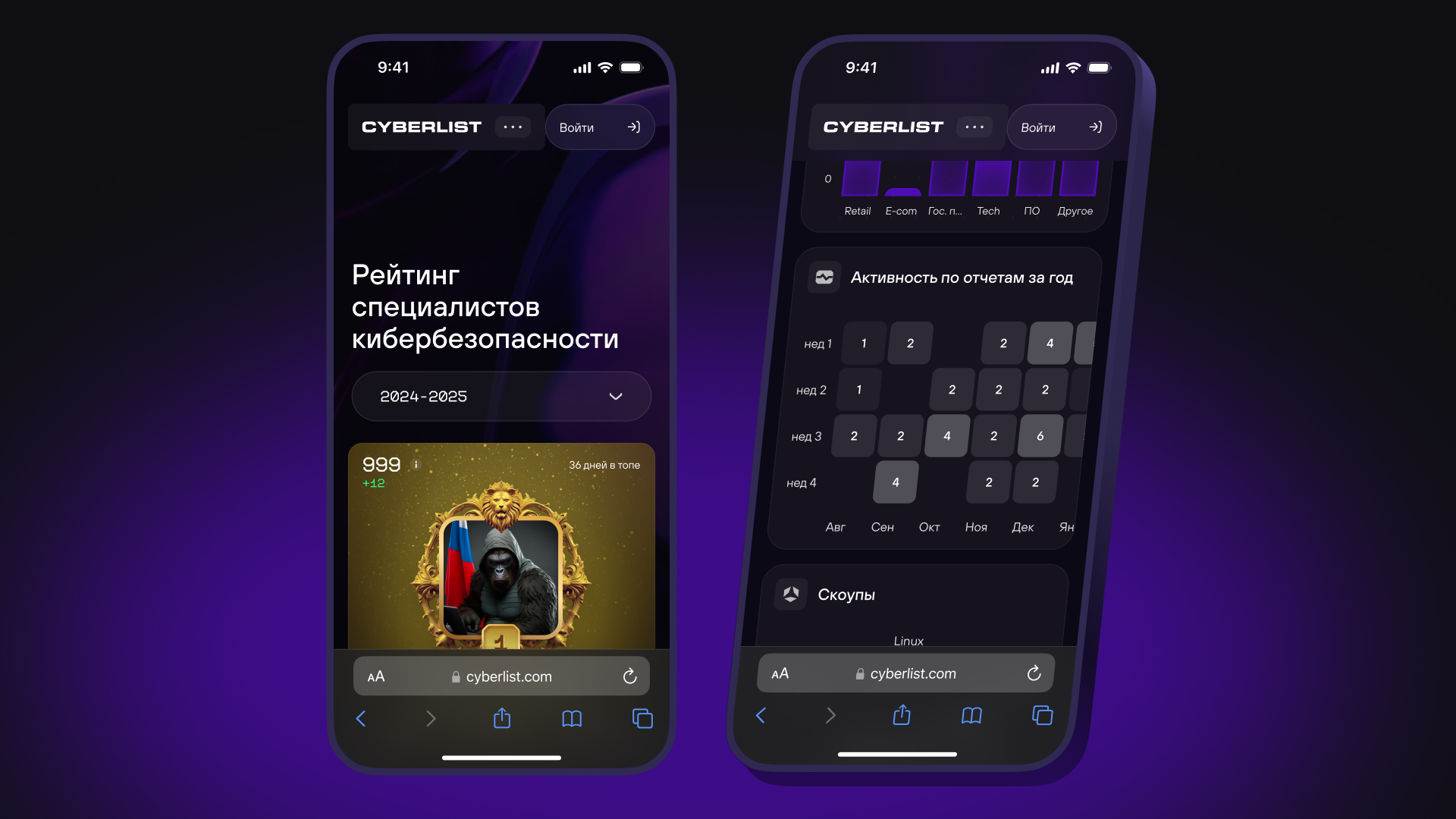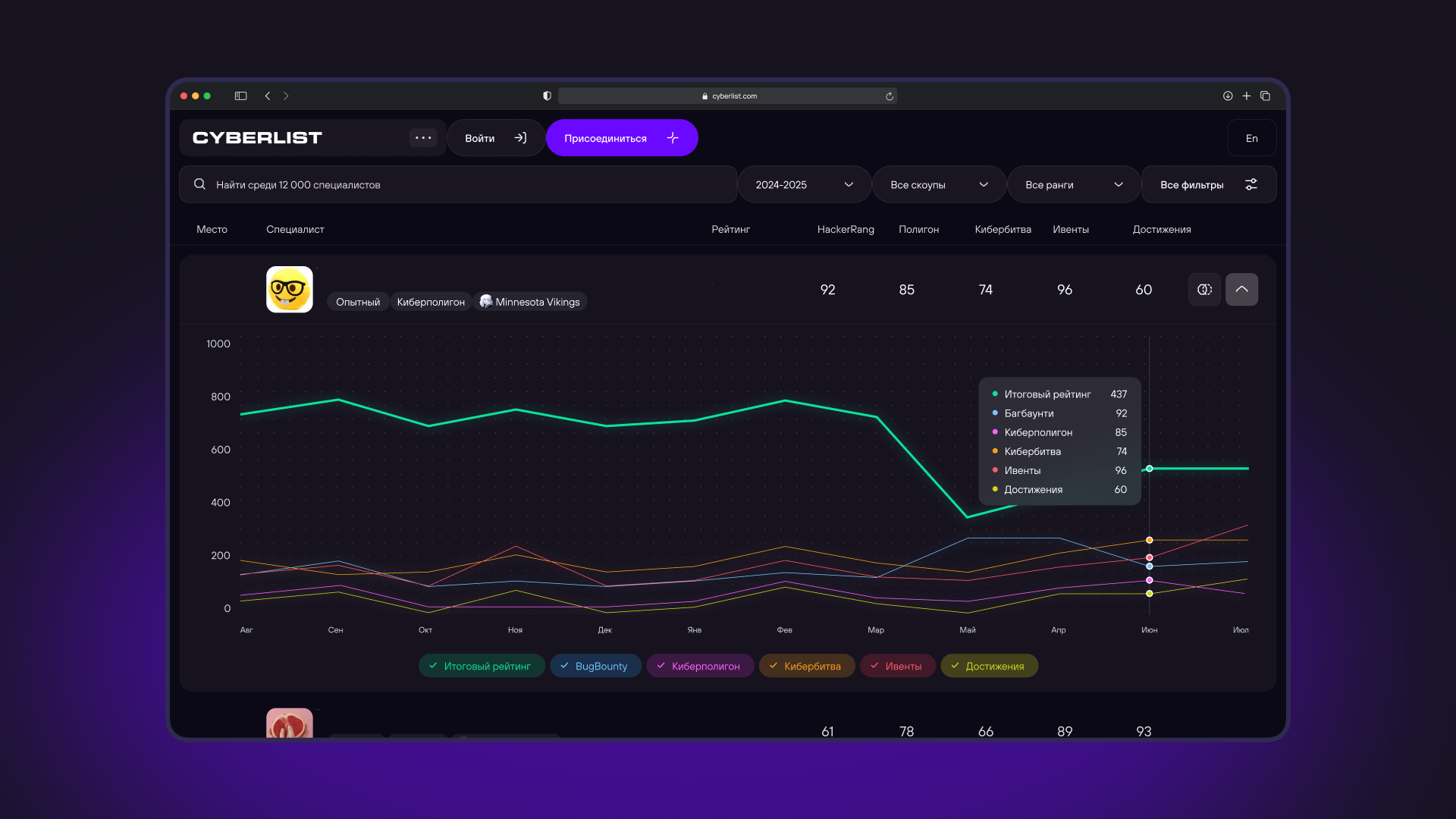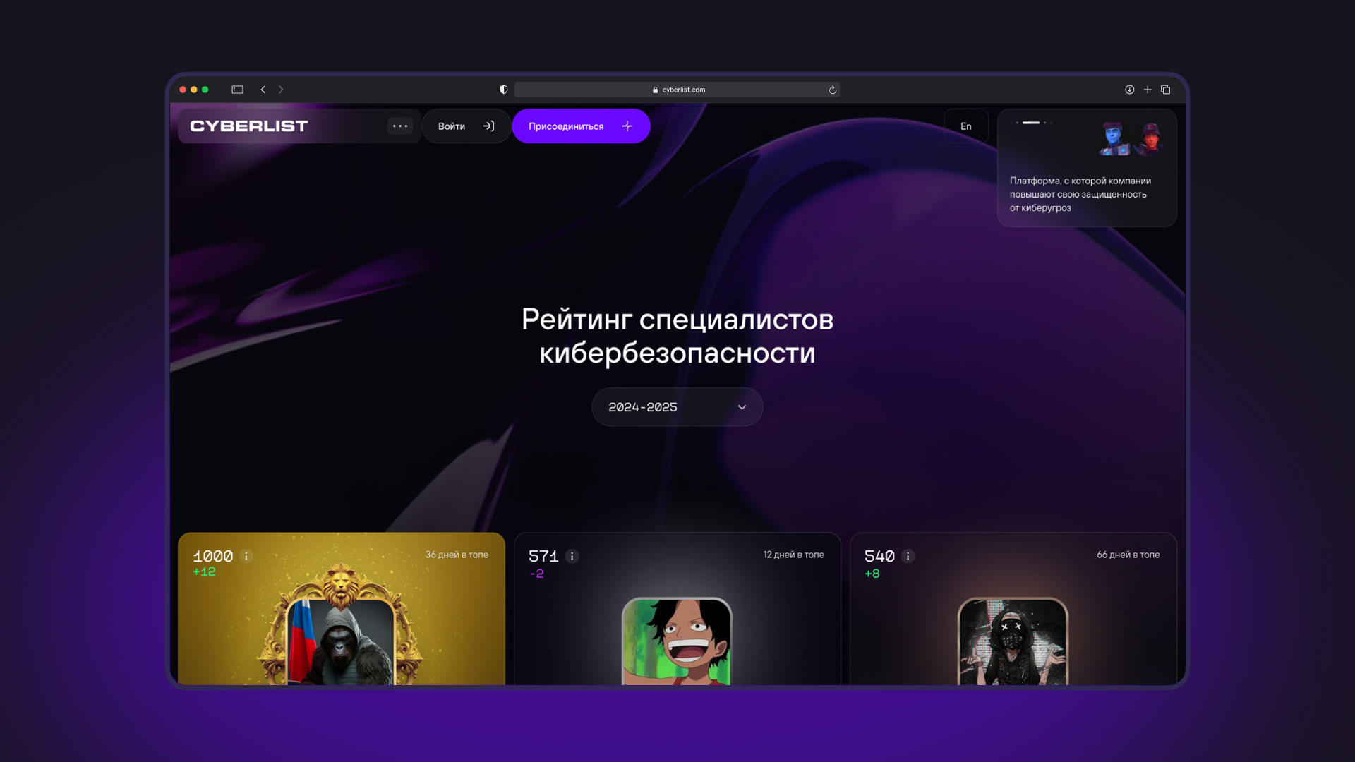 CYBERLIST — редизайн рейтинг-платформы специалистов кибербеза