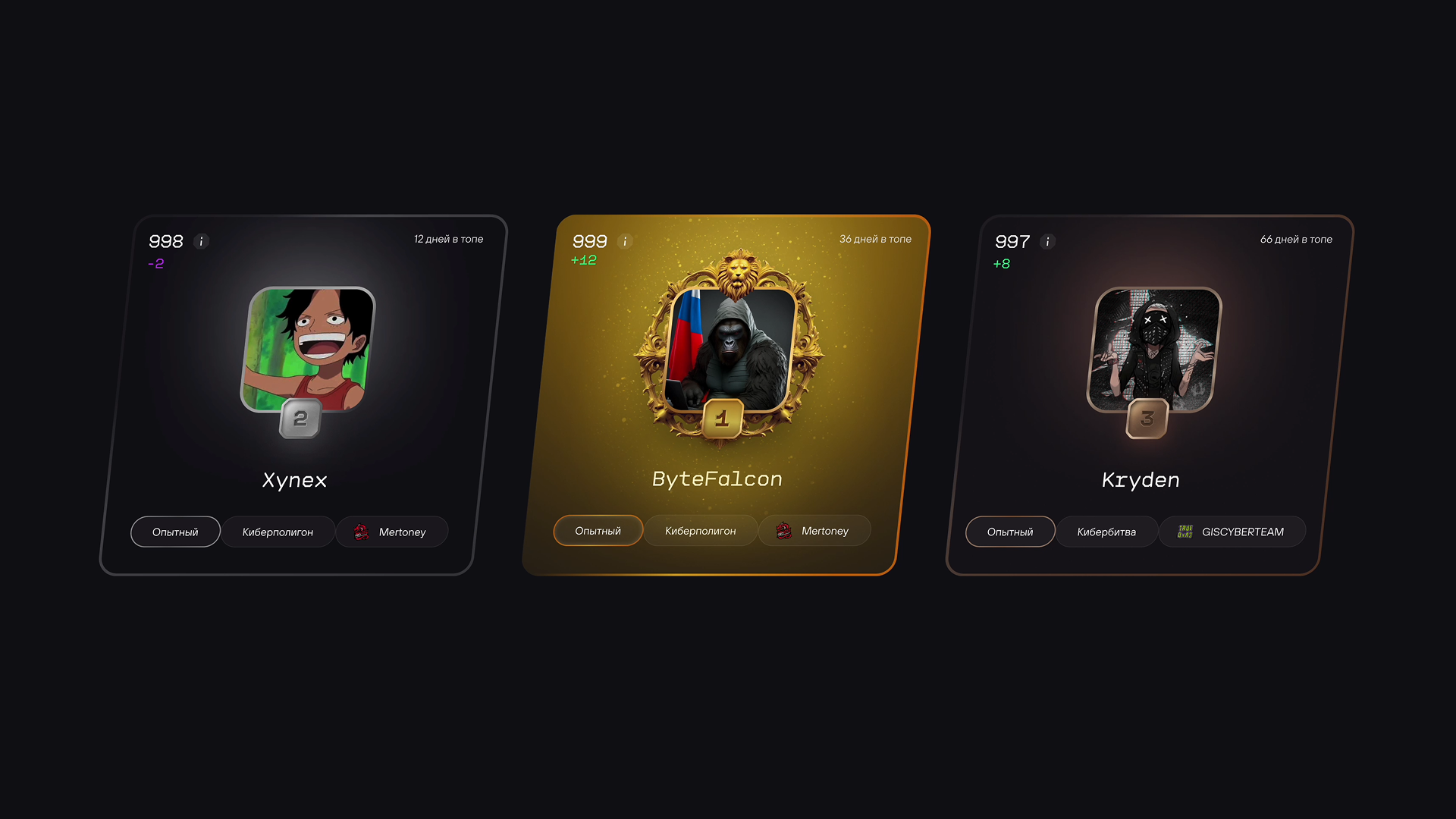 Провели дискавери, изучили игровые и киберспортивные интерфейсы. Добавили баллы за действия, визуальные эффекты, пьедестал топ-3 и рамки для тех, кто быстро растёт. Пересобрали механику: каждое действие даёт баллы, а за неактивность — списание. Новички могут догонять, лидеры — удерживать позиции. Добавили фильтры, сравнение и выгрузку в PDF. Теперь менеджеры легко находят нужных хакеров, делятся выбором с коллегами и быстрее принимают решения.