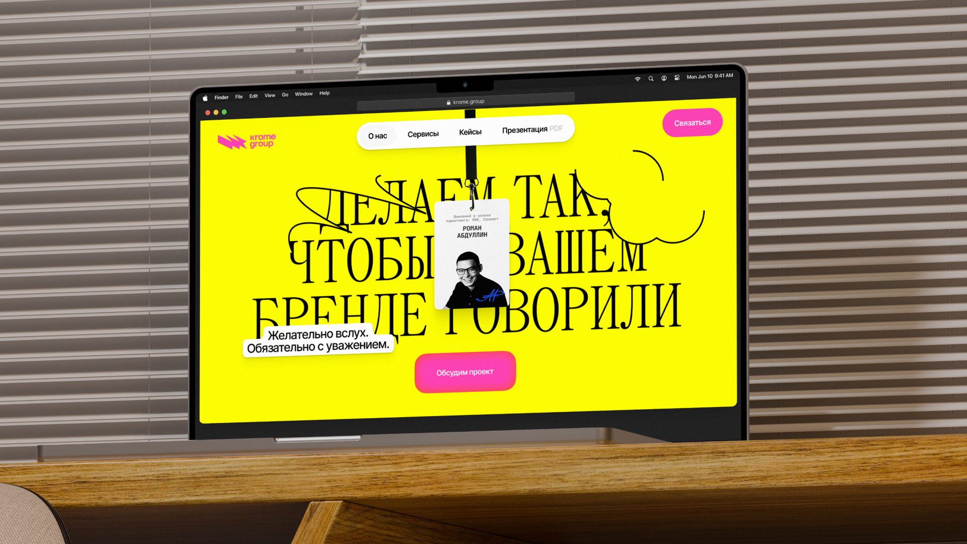 — На главной — бейджик с именем: он не только декоративный, но и функциональный — сразу объясняет, кто такой Роман и чем занимается команда.