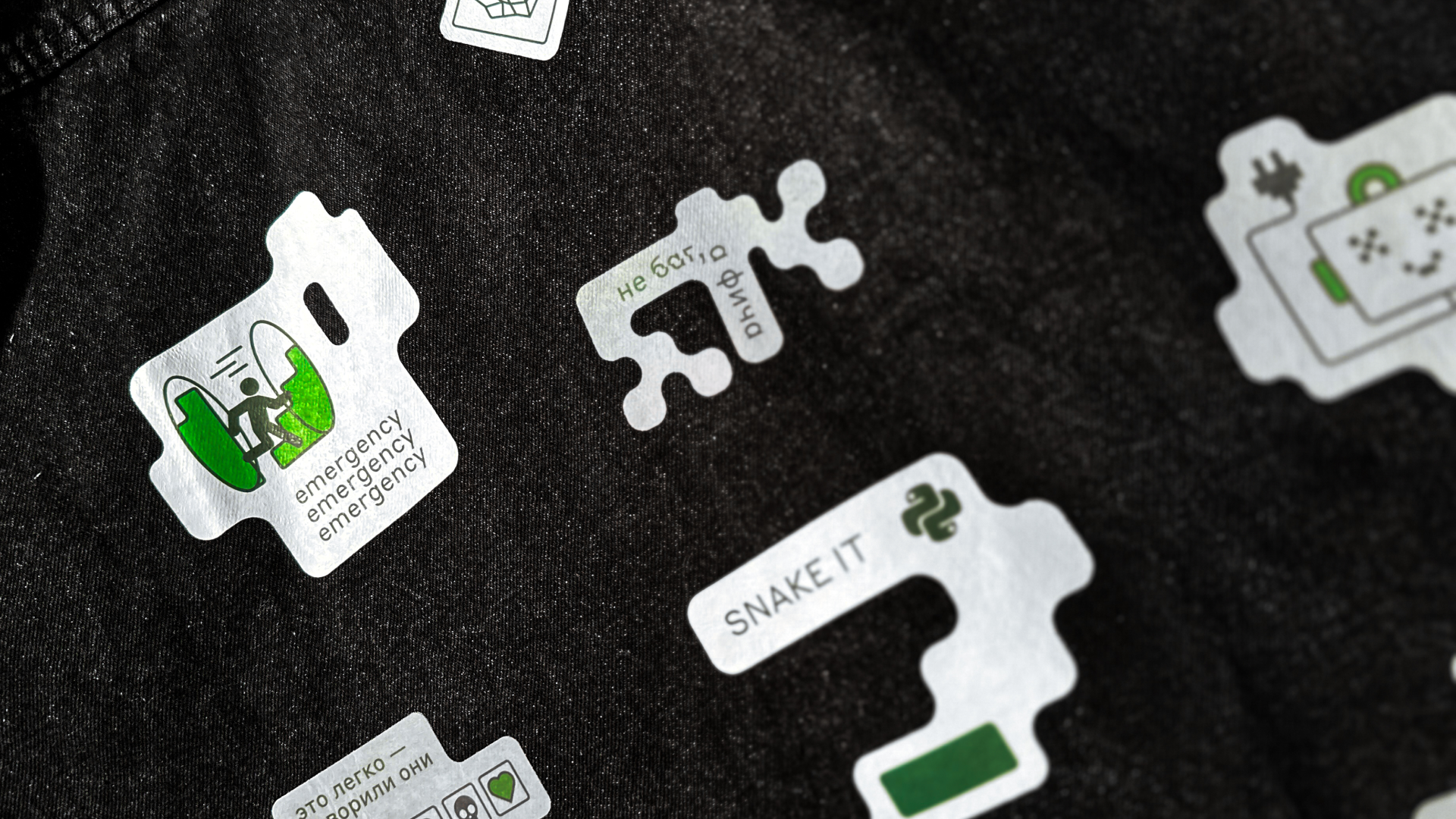 Мы соединили ретрофутуризм, ностальгию по 90-м, эстетику первых компьютеров и дух DIY. Добавили сюда нашивки, вдохновившись костюмами космонавтов и гонщиков, — получился мерч, который можно собирать как конструктор. Комбинировать элементы, добавлять свои детали, вплетать скрытые отсылки — делать по-своему.