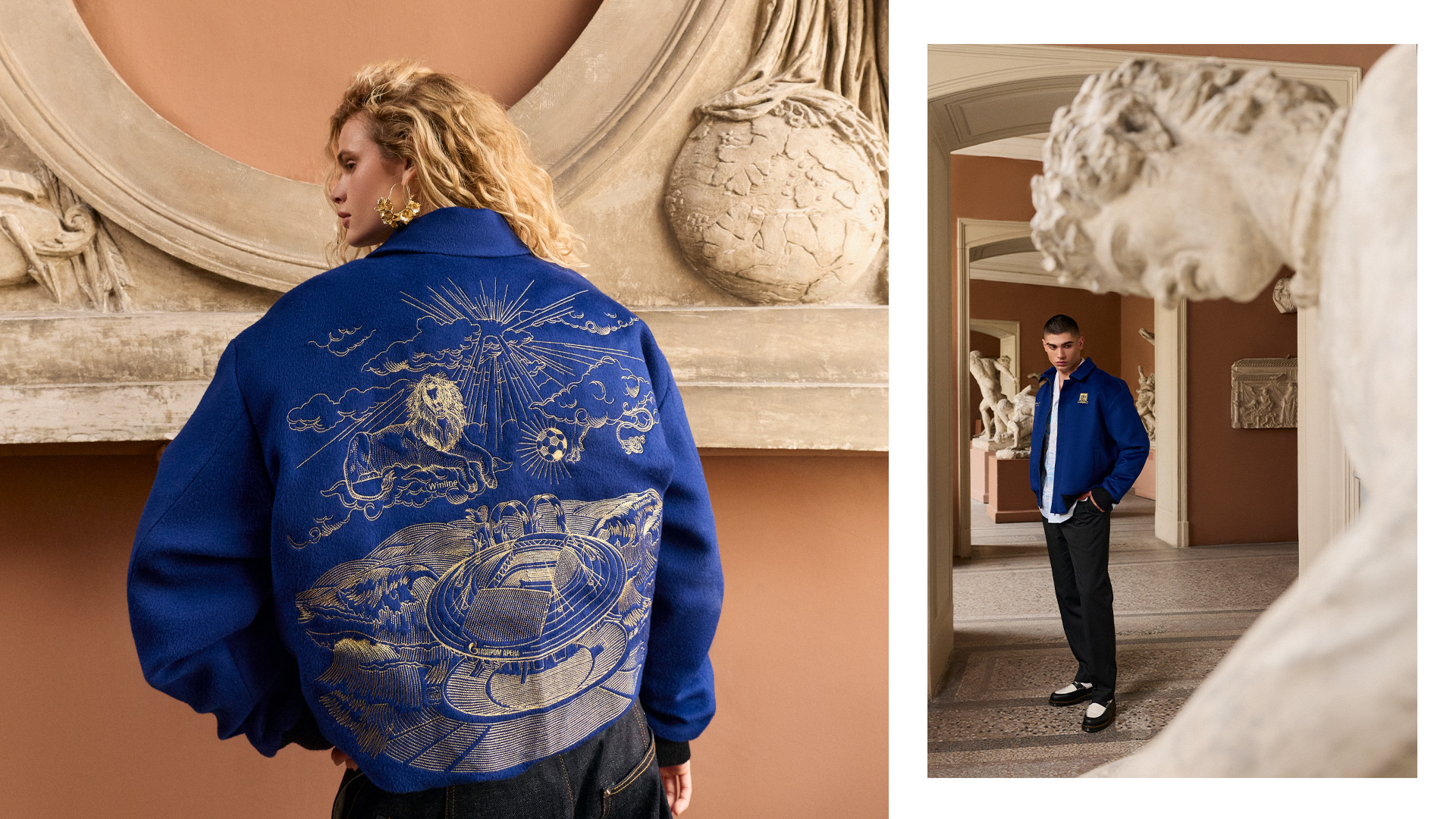 Съёмка коллекции прошла в музее Академии художеств, где интерьеры и атмосфера стали смысловым продолжением графики на одежде. Такой выбор подчеркнул идею создателей — не просто сделать стильный мерч, а встроить его в культурный контекст города, где спорт и искусство становятся равноправными выразителями духа Петербурга.