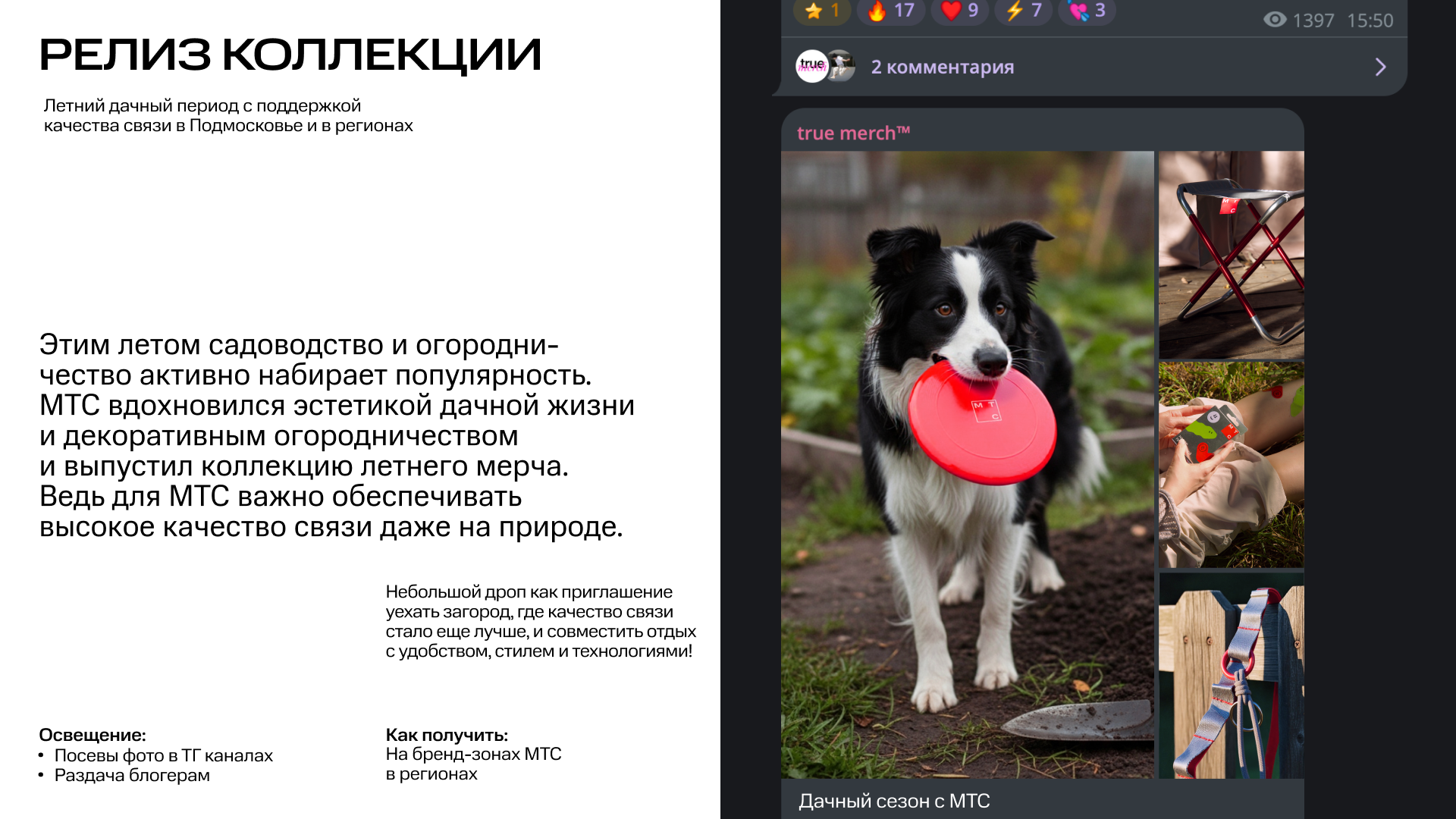 Коллекция была представлена на летних зонах МТС в регионах, где посетители были готовы принимать участие в непростых механиках активностей, чтобы получить мерч.