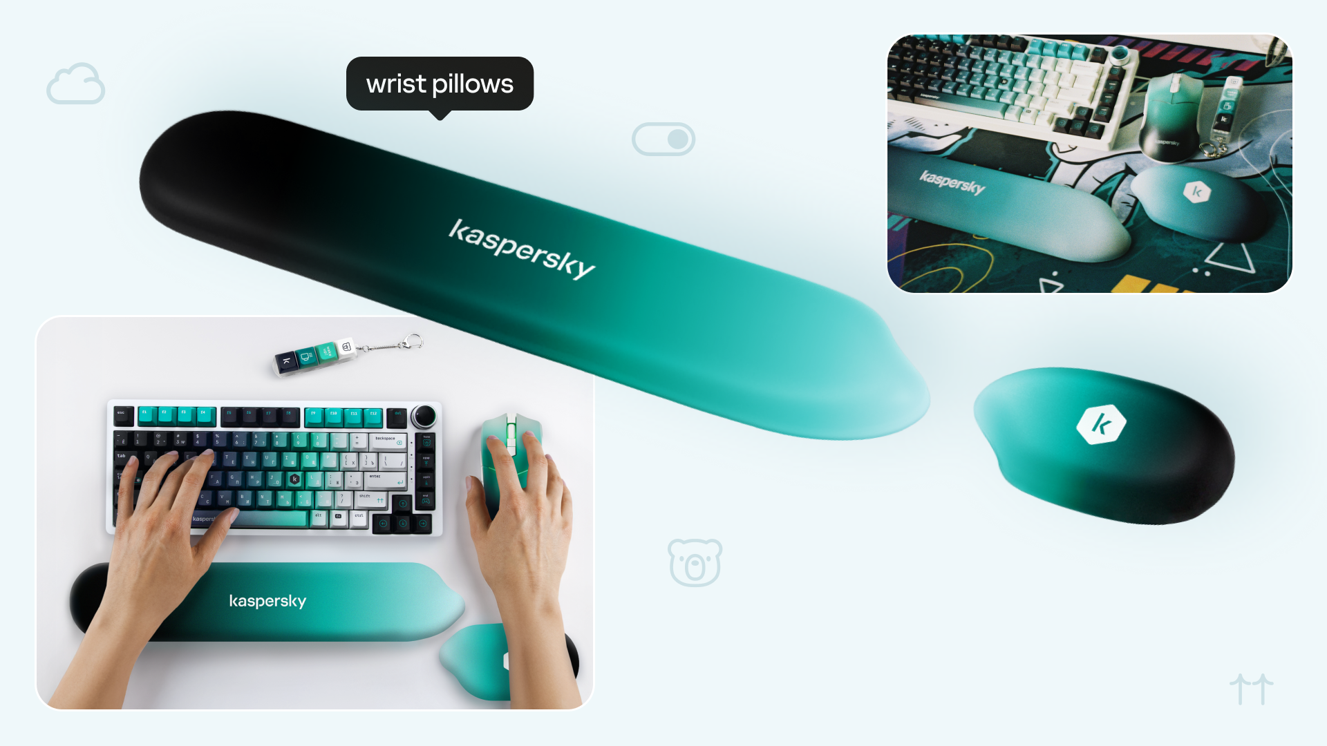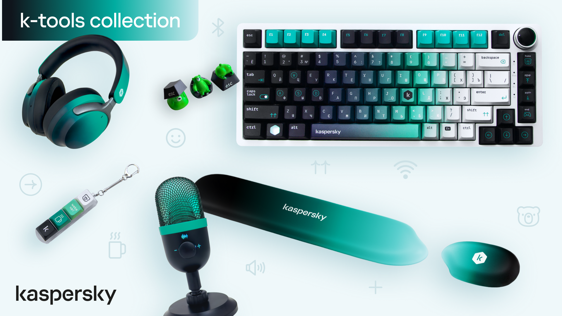 Все аксессуары выдержаны в фирменной цветовой гамме Kaspersky: