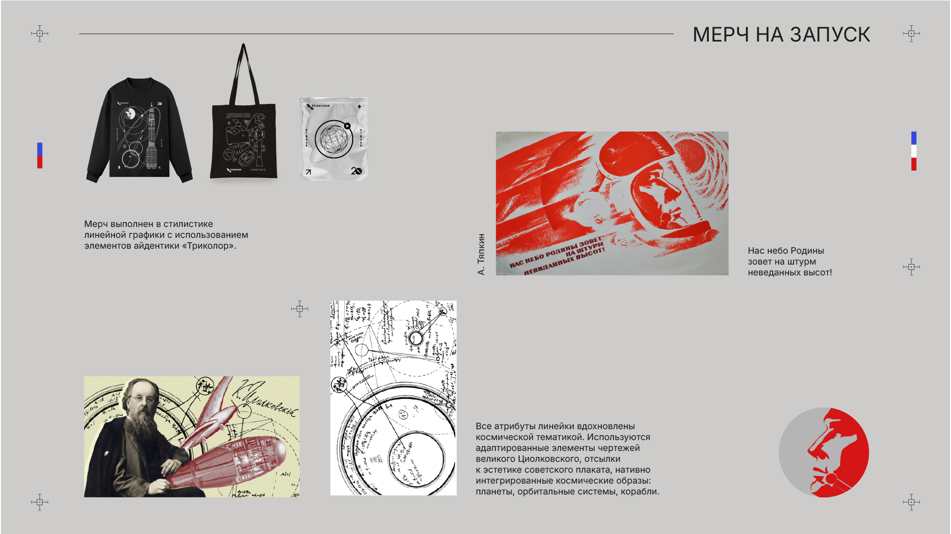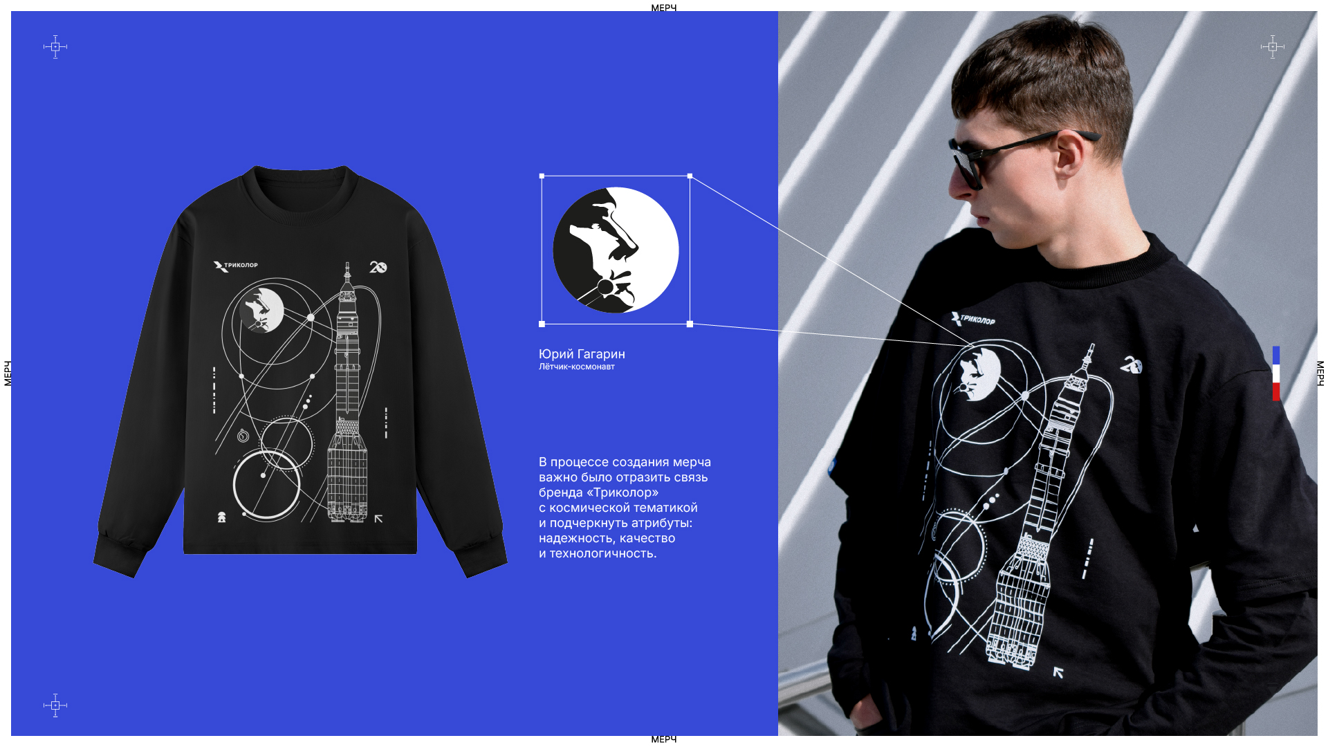 Наш бренд живет в двух измерениях: технологичность, определяющая наш подход к делу, и космическая креативная рамка, определяющая масштаб нашего мышления. Эти ценности — ДНК всего, что мы создаем, включая сувенирную продукцию.