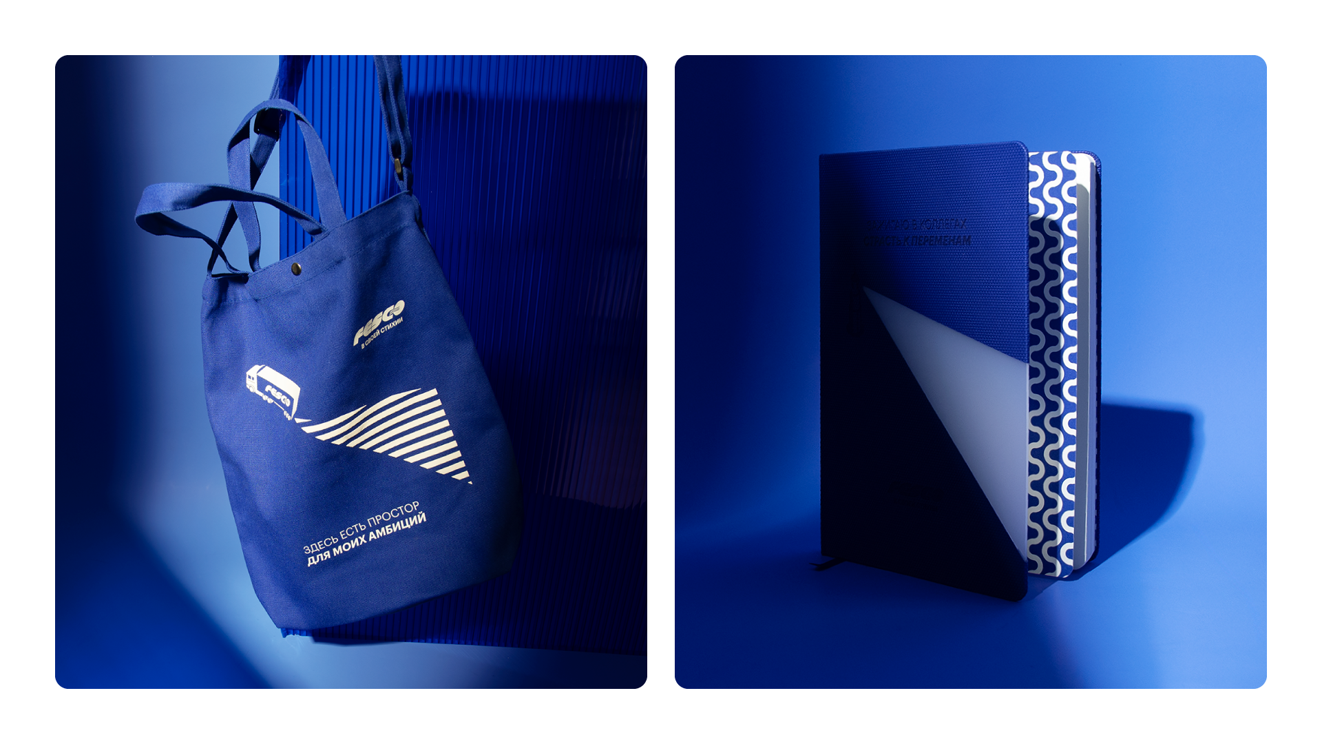 Велкомпак FESCO — проект, где каждый предмет становится носителем корпоративных ценностей. Мы переосмыслили HR-слоган «В своей стихии» и сделали его центром визуальной концепции. Каждый сотрудник попадает сюда как в «свою стихию»: FESCO осуществляет контейнерные перевозки морским, железнодорожным и автотранспортом. Сотрудник развивается вместе с компанией и оставляет свой след: свет маяка, путь на трассе, линии рельсов. Внутри этих следов — фирменный паттерн.