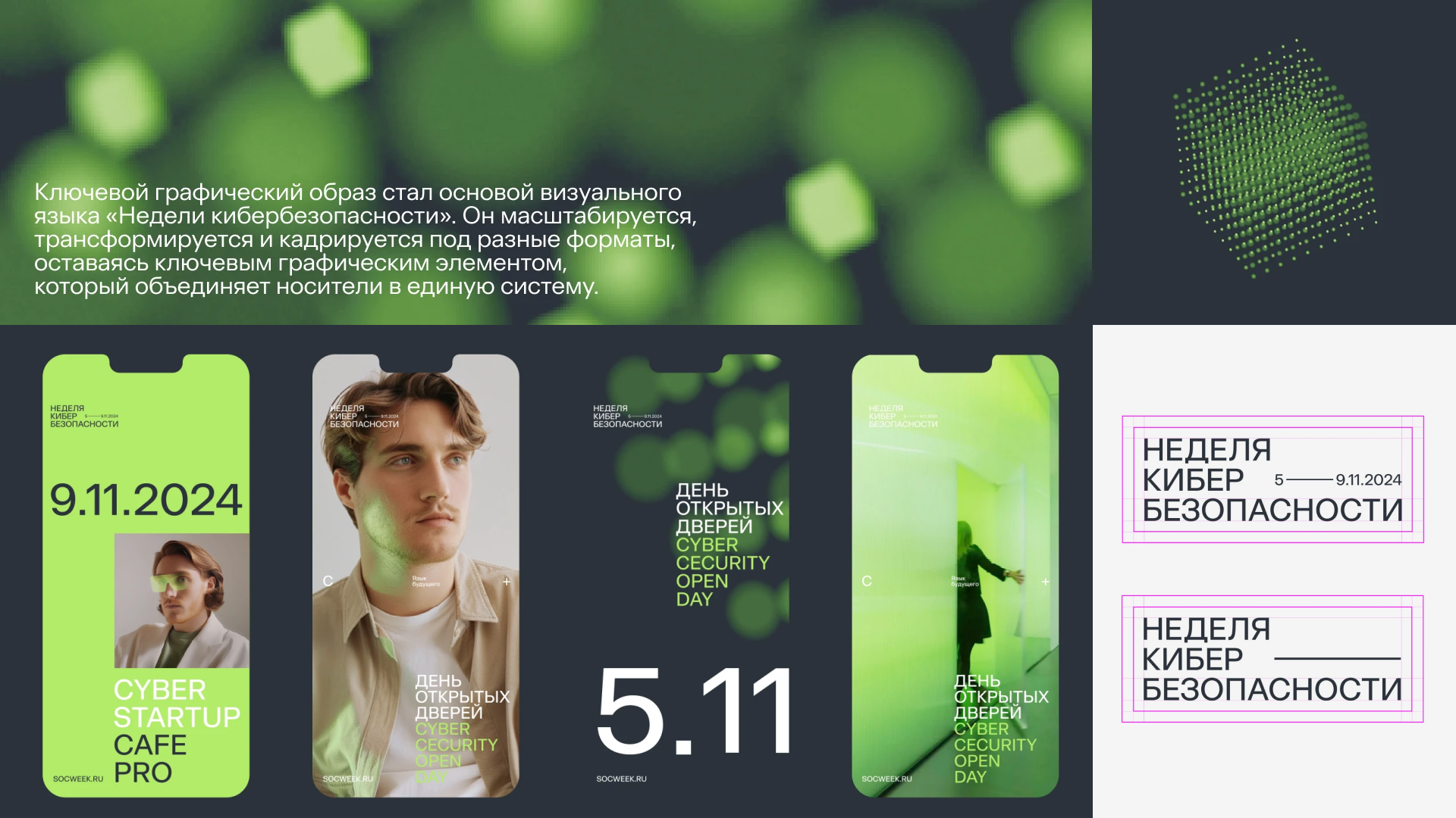 В связи с появлением масштабного проекта «Недели кибербезопасности», куда вошел SOC Forum, возникла потребность в новом стиле. Мы с нуля разработали единую зонтичную дизайн-систему. Она органично объединила визуальный стиль самого SOC Forum, а также новую визуальную айдентику для спецпроектов Недели кибербезопасности. Каждый спецпроект был выполнен в едином визуальный подходе, однако, сохранил в себе индивидуальность.