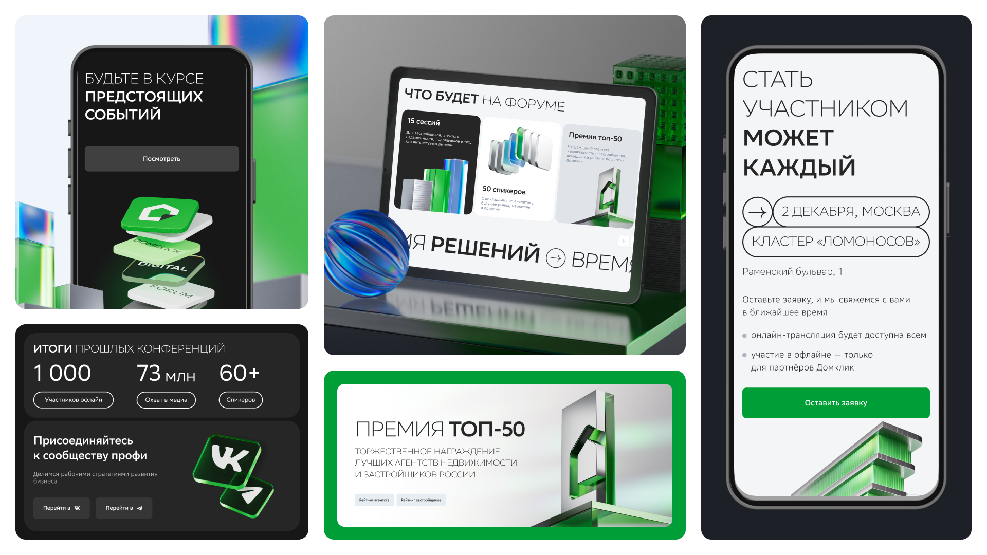 Мы разработали визуальную и цифровую концепцию, которая объединила технологичность, современный дизайн и статус мероприятия. Основой стиля стал эффект стекла, отражающий диджитал-направленность и инновационный дух форума. Созданный сайт с интерактивной программой, каталогом спикеров и возможностью онлайн-регистрации обеспечил участникам удобный и яркий цифровой опыт.