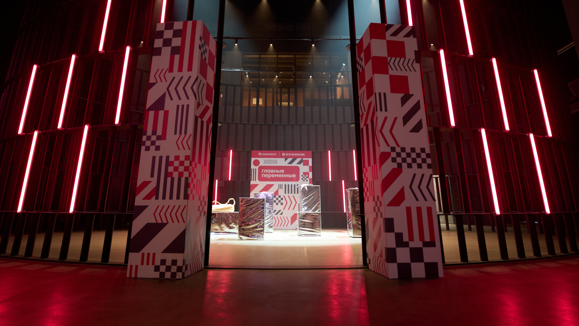 Основой для метафоры айдентики послужил паттерн с ограничительных лент и знаков, располагающихся в местах строительных работ. Таким образом в стиле зашифровано пересечение тем города и преобразований. Сегменты паттерна становятся модулями, которые могут пересобираться и взаимодействовать друг с другом в различных вариациях. Одной из задач также было создание комфортного взаимодействия гостей с мероприятием еще до его начала. Большие медиаэкраны на площадке и окружающей территории позволили масштабировать айдентику за стены площадки и сделать элементы графики навигацией для прибывающих на показ гостей.