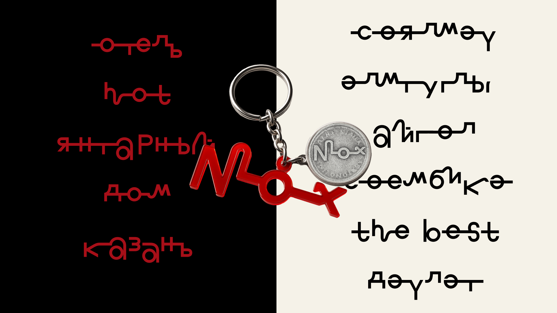 Логотип отеля также набран шрифтом, без дополнительных графических элементов. Слово NOX переводится с татарского как «ночь», а его начертание напоминает форму ключа.