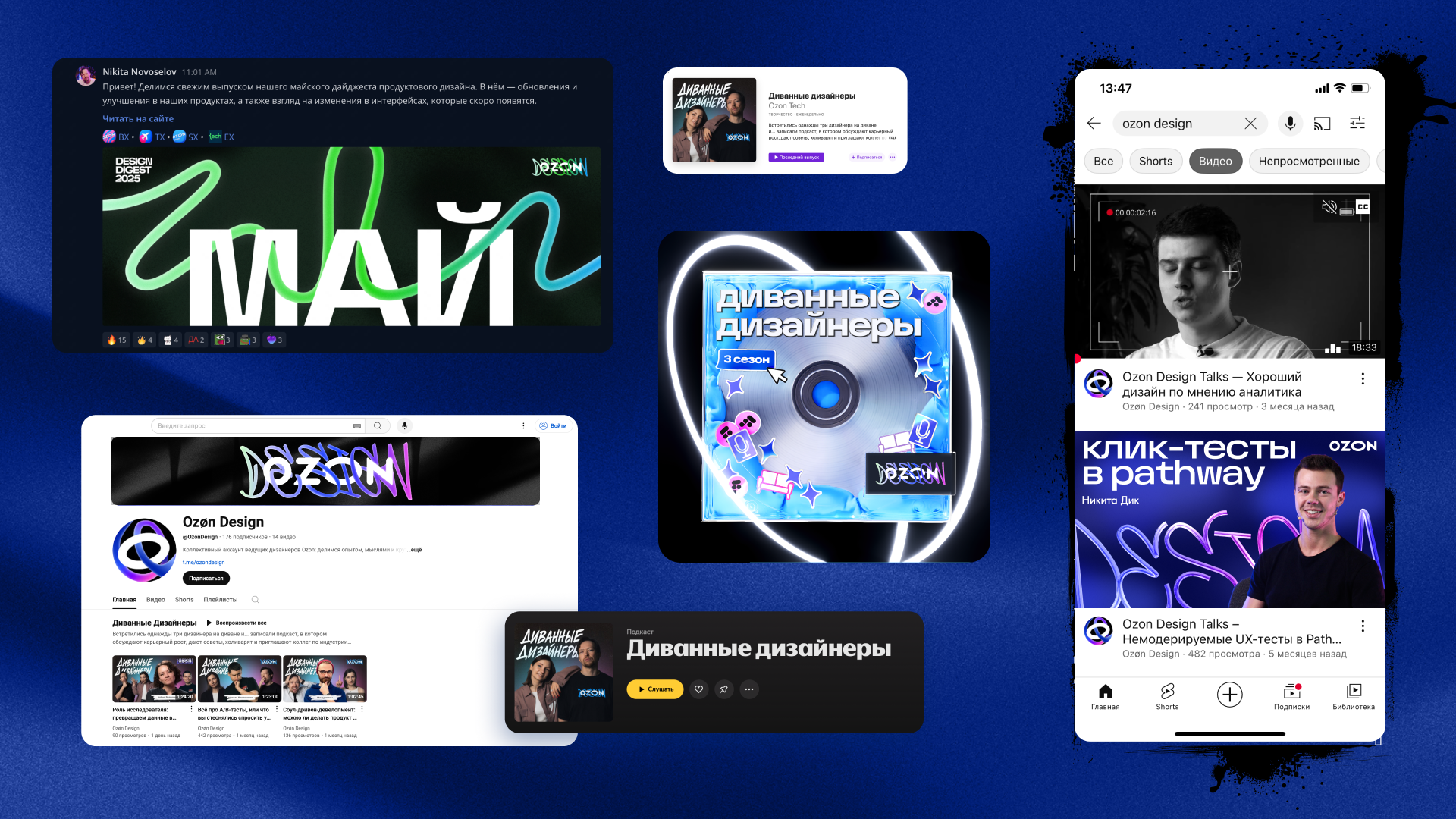 Сообщество Ozon Design — это не стерильно-бигтеховскый бренд, а живые и классные люди, которые делают друг друга лучше. Мы постоянно обогащаемся и растём друг об друга: и как специалисты, и как личности. Телеграм-канал Ozon Design — открытая форточка, через которую выветривается продуктовая духота и можно ощутить нашу внутреннюю кухню, юмор и культуру. То, какие мы.