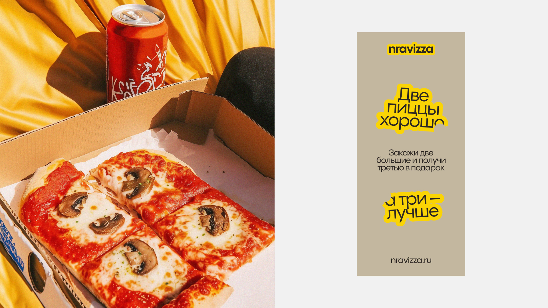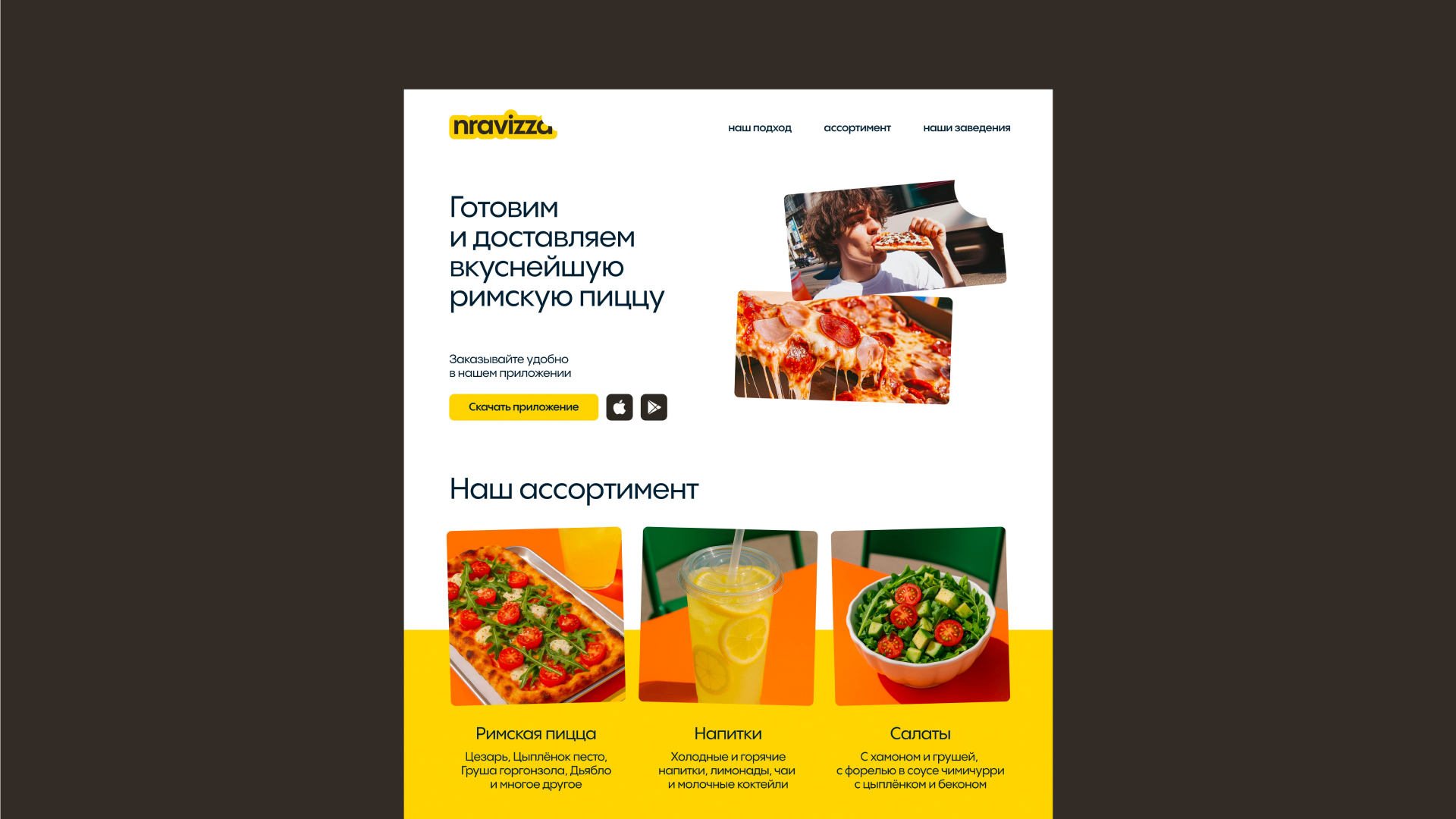 Название Nravizza родилось из игры слов «нравится» и «пицца», задав лёгкий и ироничный тон бренда.