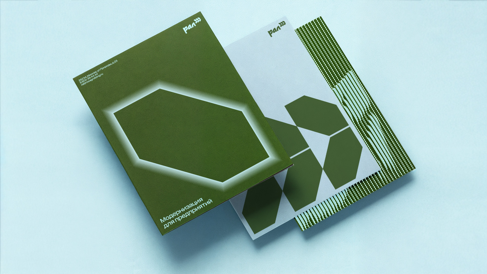 В новом корпоративном стиле идея модернизации и движения к позитивным изменениям, заложенная в позиционировании, воплотилась в знаке — это вектор движения вперед, колос и даже след тяжелой техники, в том числе сельскохозяйственной. Цветовая гамма поддерживает это впечатление: мы видим плотный и землистый зеленый — всходы в поле и легкий голубой, как небо в первые рассветные часы, — символ нового начала, когда день впереди и все получится. Буквы логотипа лаконичны и основательны, их геометрия и конструкция имеют визуальные отсылки к основам кириллической письменности. Буквы также вдохновлены и формой резца плуга, давая связь с базовыми компетенциями компании «Росагролизинг», с которых началось ее развитие.