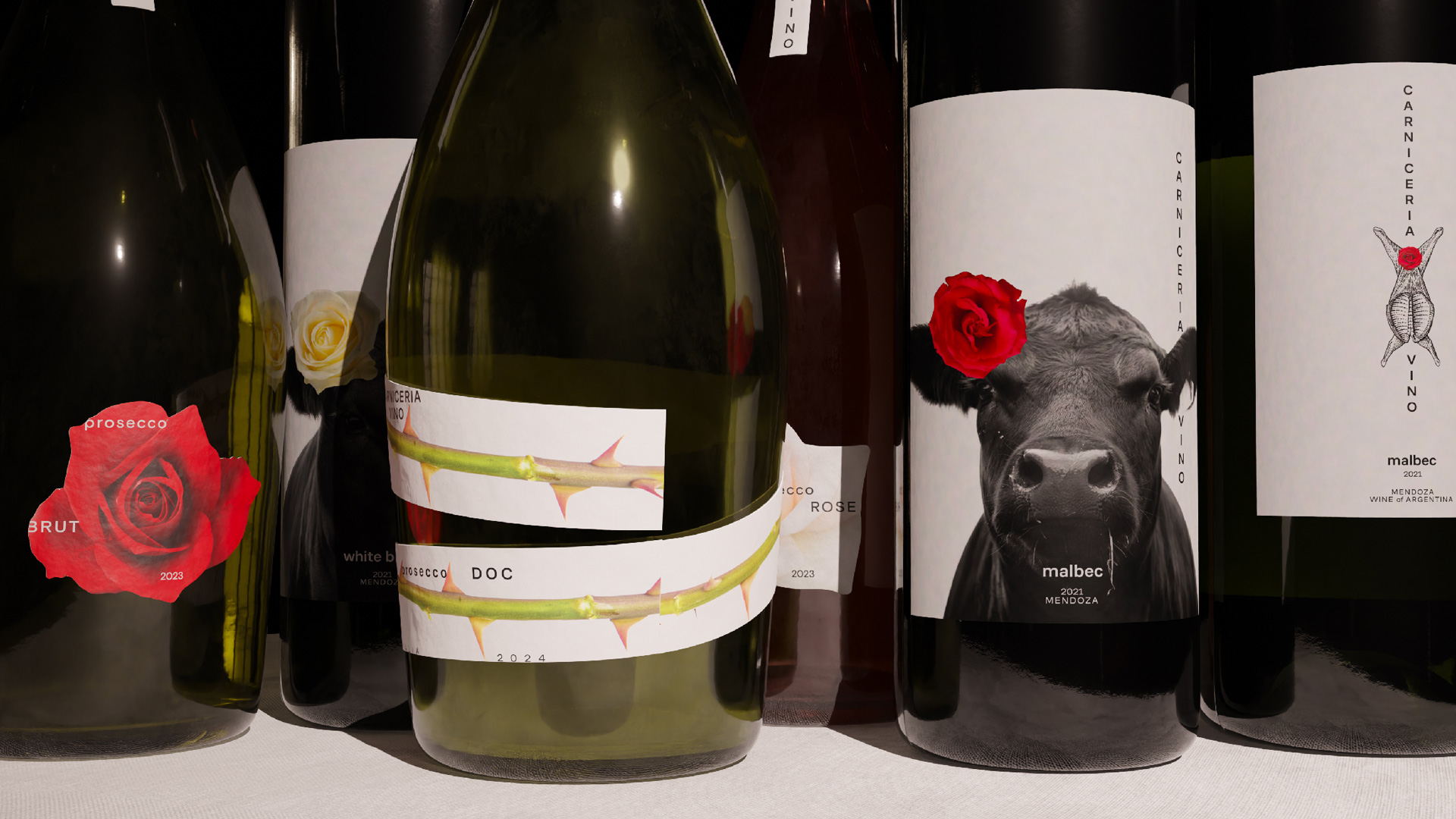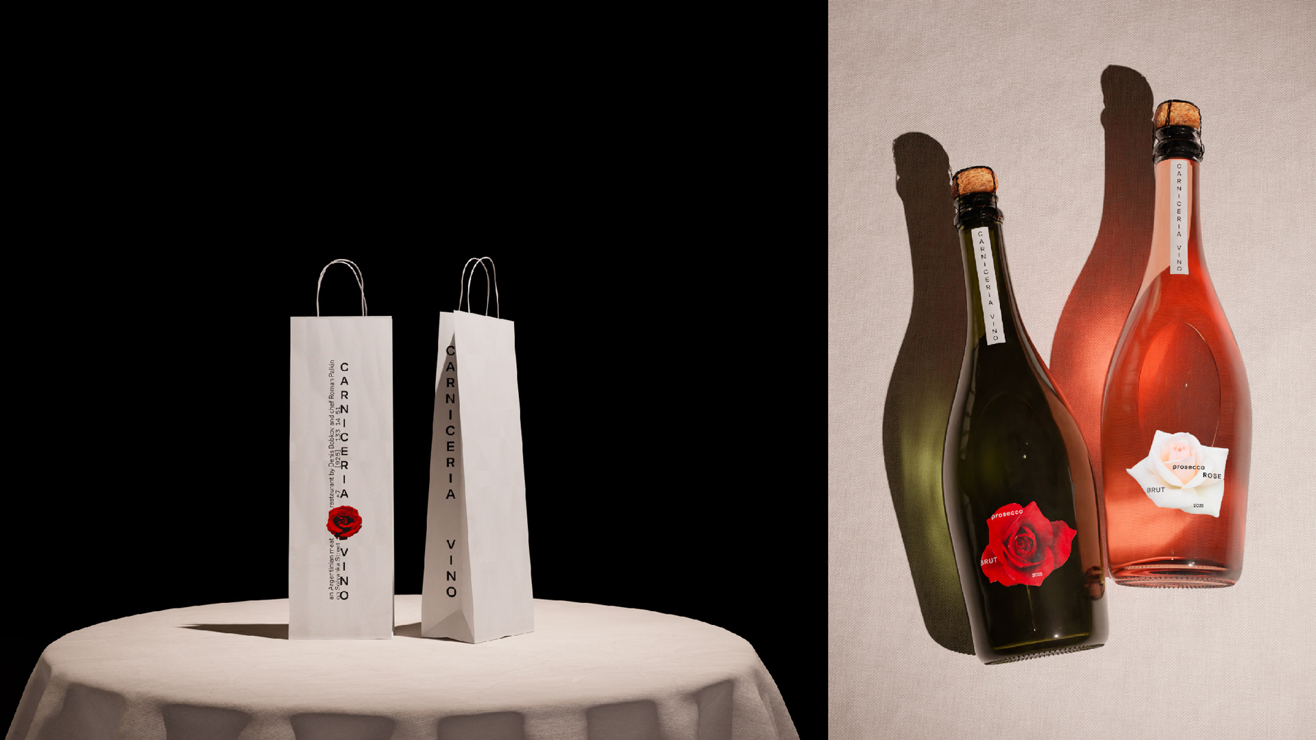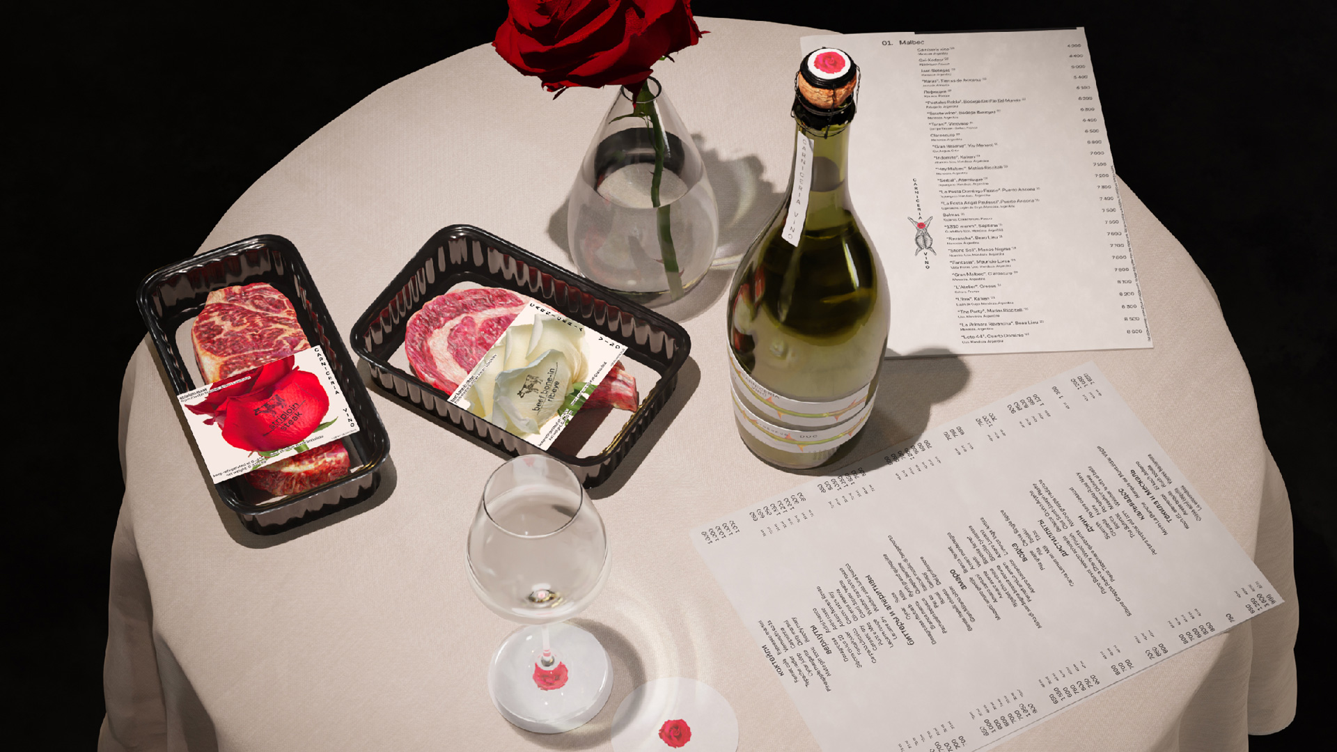 Розы появляется там, где царит плотская материальность и живой огонь, тем самым вносят лёгкость и дыхание. Они появляются на столах в ресторане, их лепестки осыпаются на блюда с латиноамериканской кухней. С их появлением айдентика выходит за пределы буквальной мясной темы и обретает иронию и красоту.