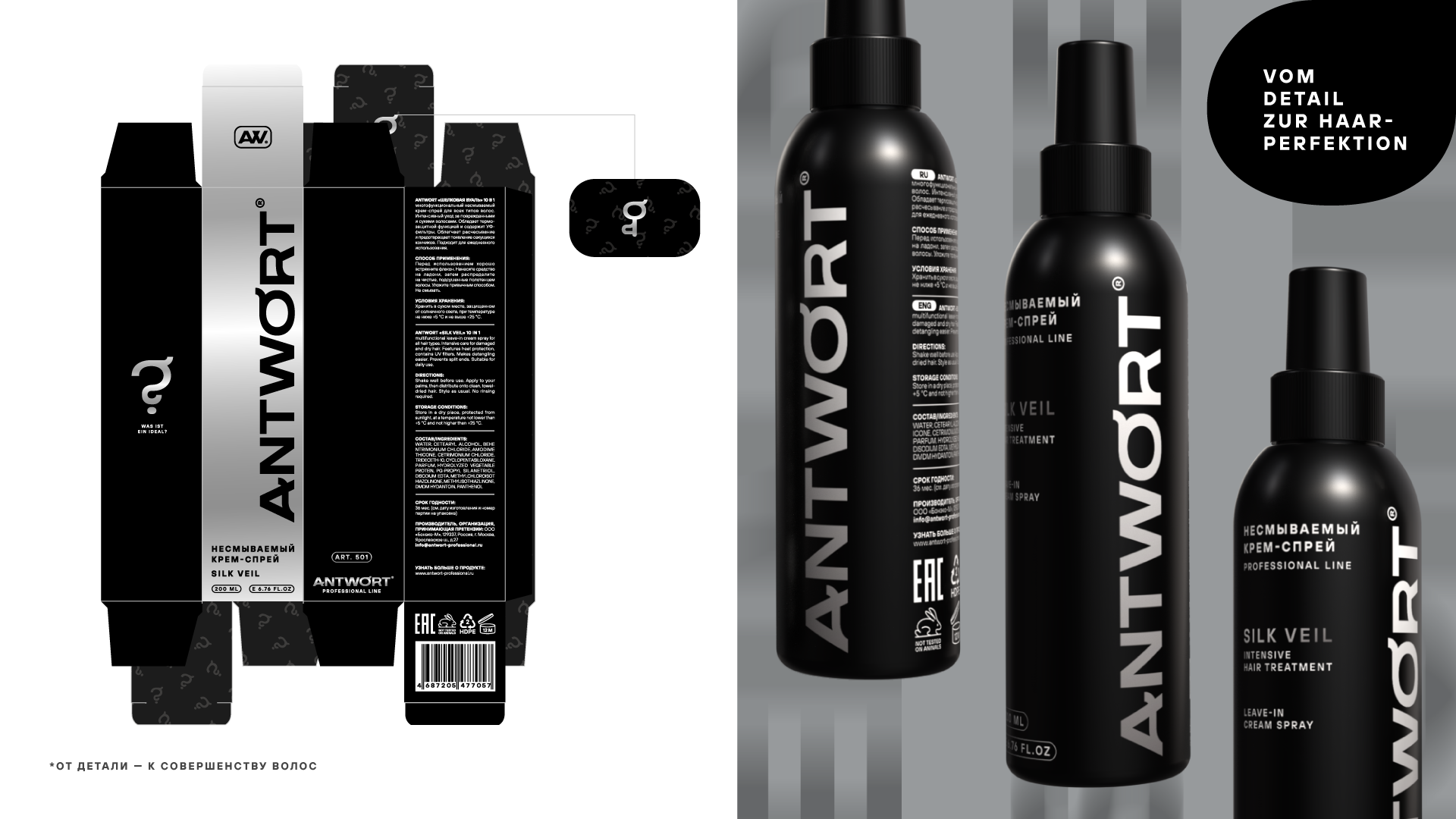 ANTWORT (с немецкого – ответ) — это уходовая косметика для волос, которая трансформирует вопрос о совершенстве в готовое решение. Ее миссия — создать не просто линейку средств, а ключ к персональной ритуализации ухода, предлагая не мгновенный «ответ», а продуманный, осознанный путь к преображению. Многослойность бренда подчеркивается в том числе и использованием немецкого языка: каждая фраза отсылает к философии самопознания и поиска истины, где забота о себе становится ответом навязчивым стандартам красоты.