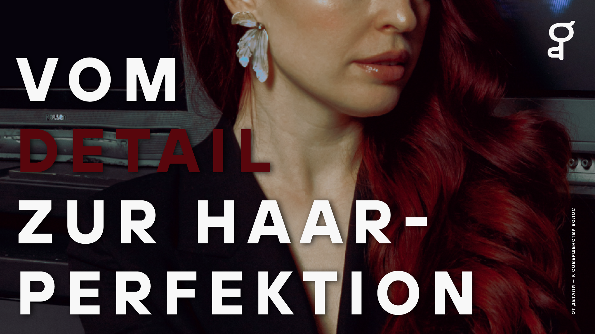 В основе концепции лежит диалог между вопросом и ответом. Надпись под знаком вопроса «Was ist ein ideal?» (что такое идеал?) — это не просто графический элемент, а приглашение к поиску ответа. Элегантный ключ — это сам продукт, материальное решение, которое открывает дверь к идеальным волосам.
