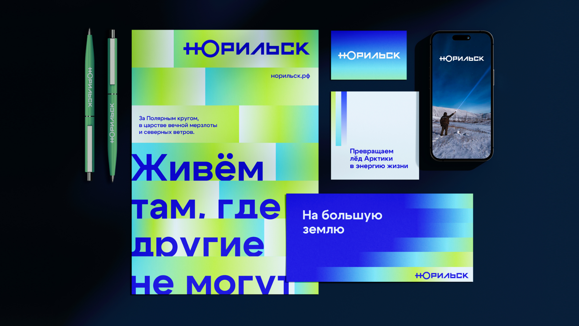 Айдентика Норильска опирается на герб — медведь с ключом от Арктики.