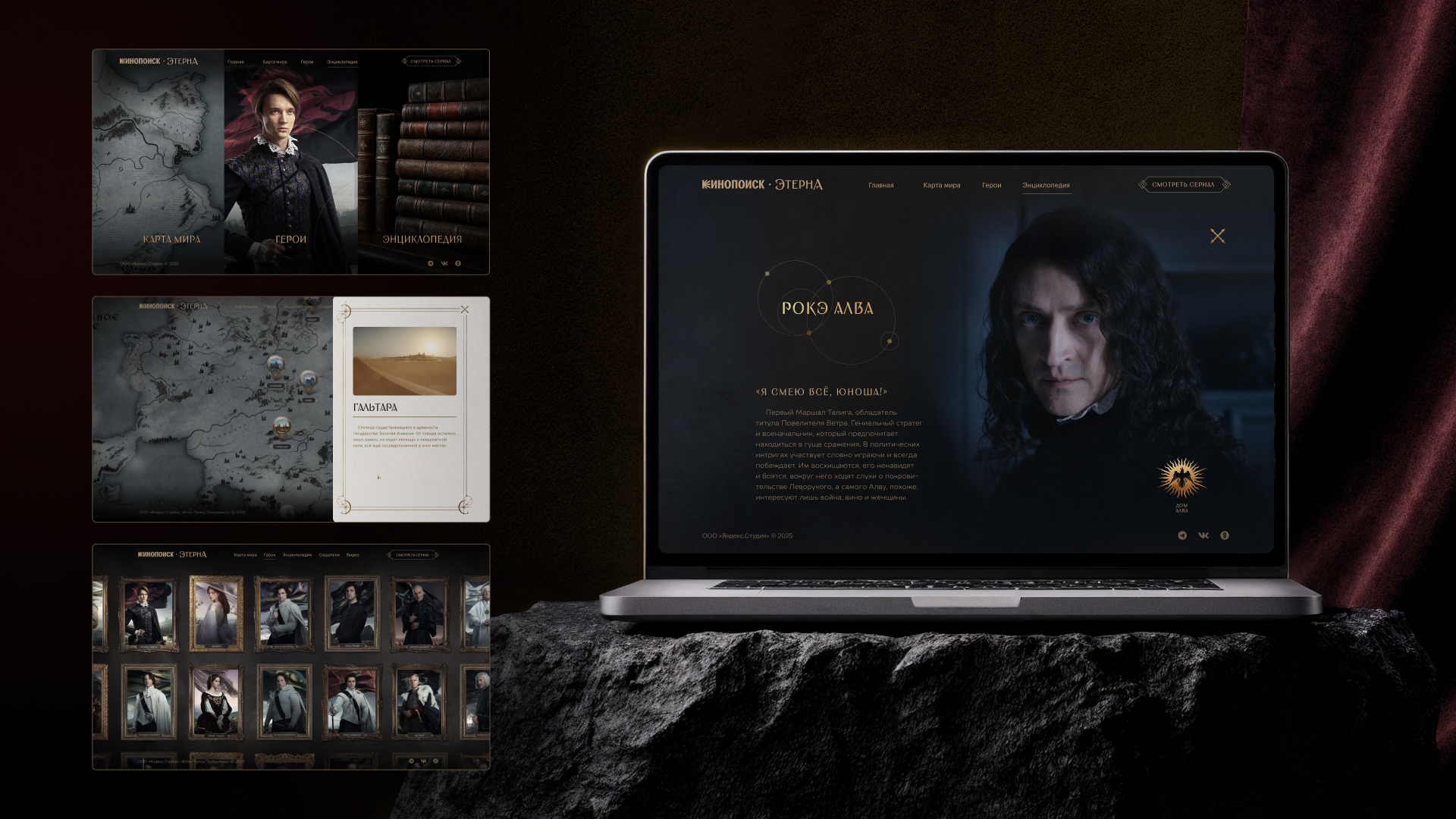 Масштабный фэнтези-сериал «Этерна» на Кинопоиске — это уникальный мир с собственной историей, законами и символами. Для продвижения проекта мы создали систему айдентики, которая подчёркивает масштабность и значимость события, делая его для зрителя не просто премьерой, а настоящим культурным явлением.