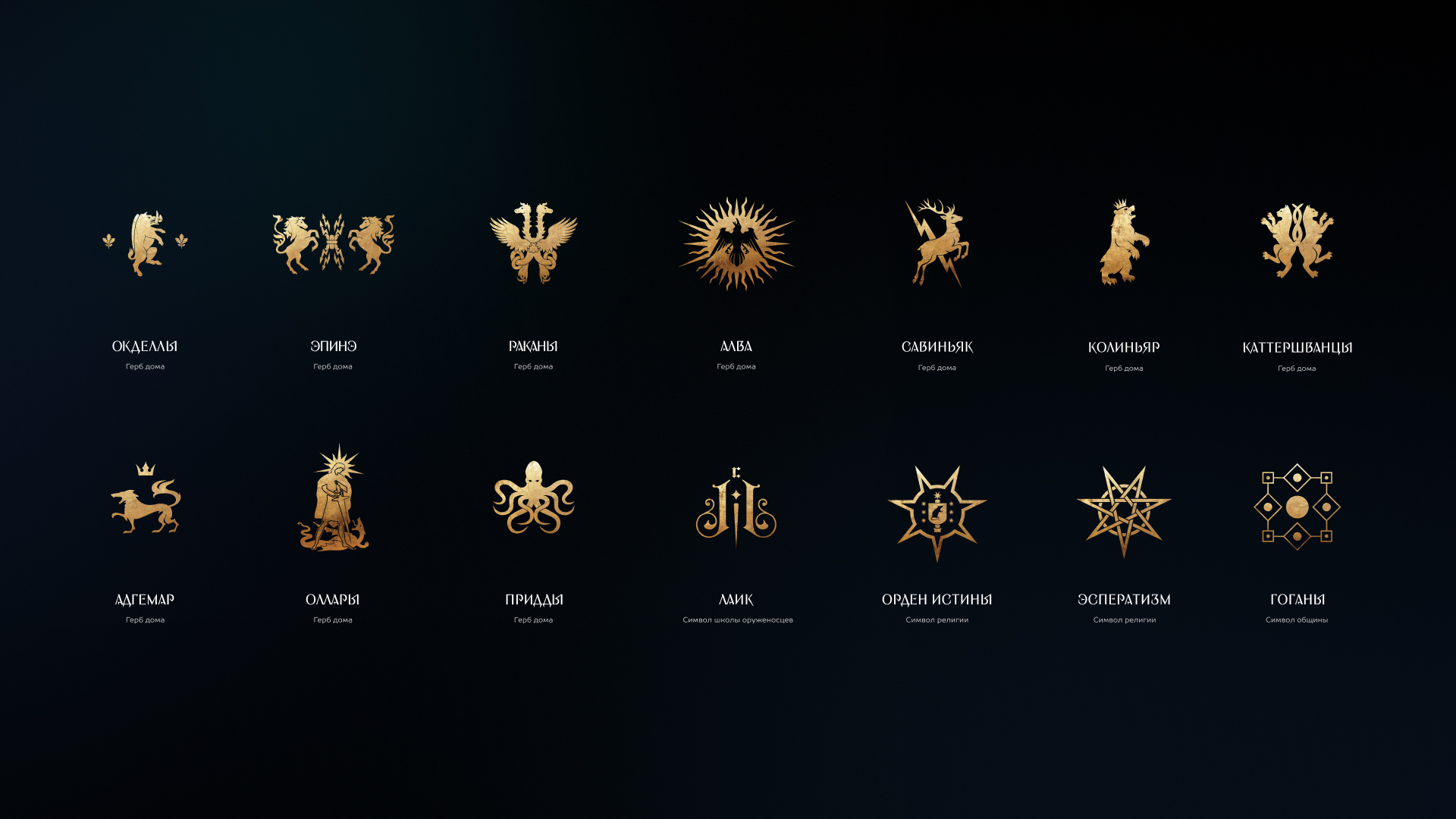 В разработке айдентики мы опирались на богатую мифологию вселенной: гербы домов и религиозные символы, шрифты, карты мира и космогонические схемы. Айдентика выполнена на трёх языках — русском, английском и арабском — чтобы поддержать международное продвижение и подчеркнуть глобальный размах сериала.