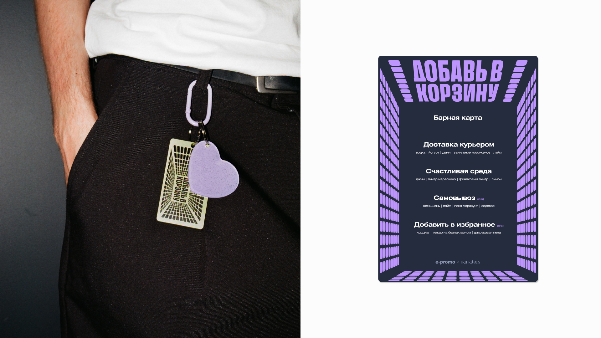 В основе концепта — корзина, символ онлайн-шопинга и визуальное подкрепление нейминга.