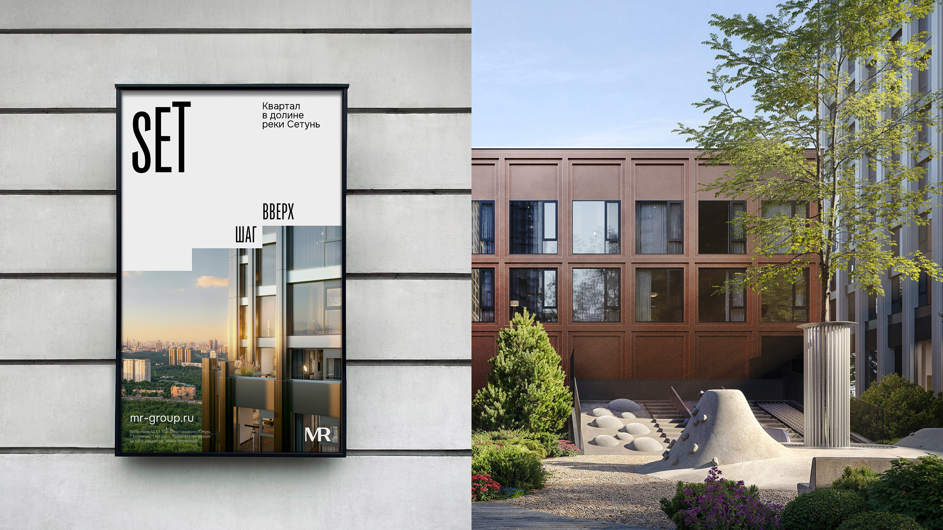 Set — жилой квартал бизнес-класса, расположенный на Западе Москвы в долине реки Сетунь. Ёмкое и лаконичное название SET отражает не только локацию, но и набор возможностей (set), которые даёт жилой квартал.