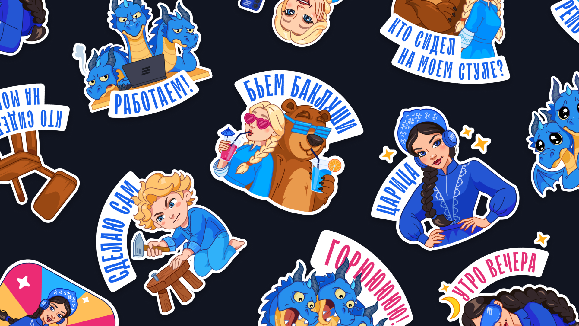 Чтобы сказка жила и за пределами сайта, мы создали анимированный стикерпак с персонажами — для чатов, переговоров и просто хорошего настроения.