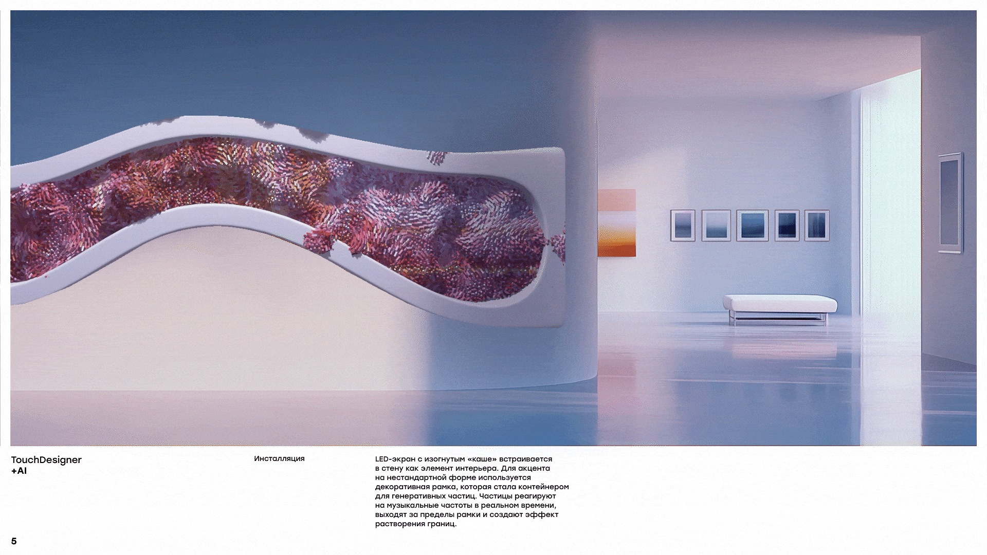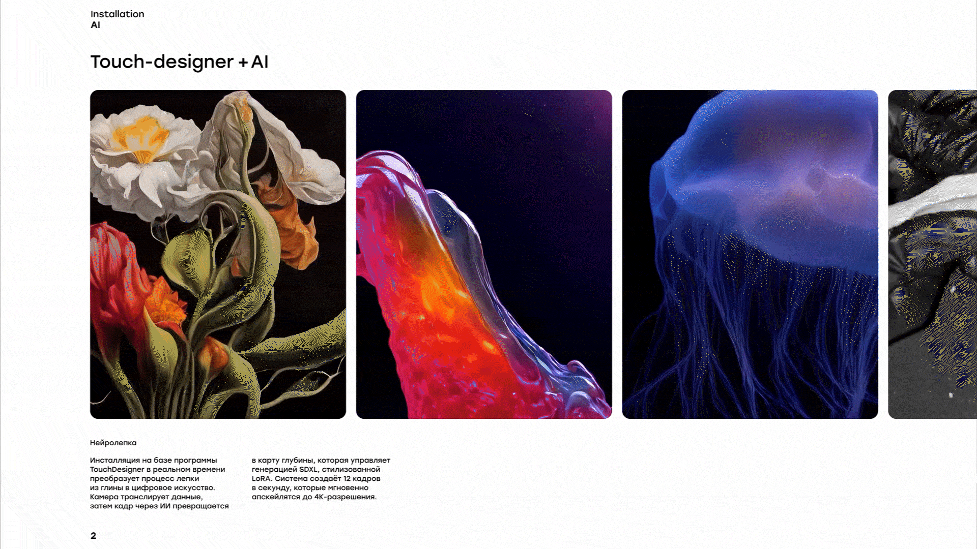 Чтобы представить сложные темы в увлекательном формате, мы придумали несколько разных механик, которые сделали инсталляции не только информативными, но и интересными. В зоне “Нейробиблиотека” можно было услышать советы от великих умов человечества, созданных с помощью ИИ: при приближении посетителей на экранах оживали портреты Чехова, Гоголя, Булгакова, Сократа и других известных личностей. Каждый персонаж давал мудрое наставление, связанное со здоровьем и образованием. Другая инсталляция позволяла создать собственный образ города будущего: на тач-экране можно было выбрать цвета и нарисовать абстрактную форму, а нейросеть в реальном времени генерировала на основе рисунка изображение города и выводила его на большой экран. Отдельного внимания заслуживает интерактивная инсталляция, демонстрирующая связь мелкой моторики и работы мозга. Посетители лепили из пластилина разные фигуры, а установленная сверху камера посылала изображение в нейросеть, которая интерпретировала увиденное и выводила на экран яркие и динамичные образы.