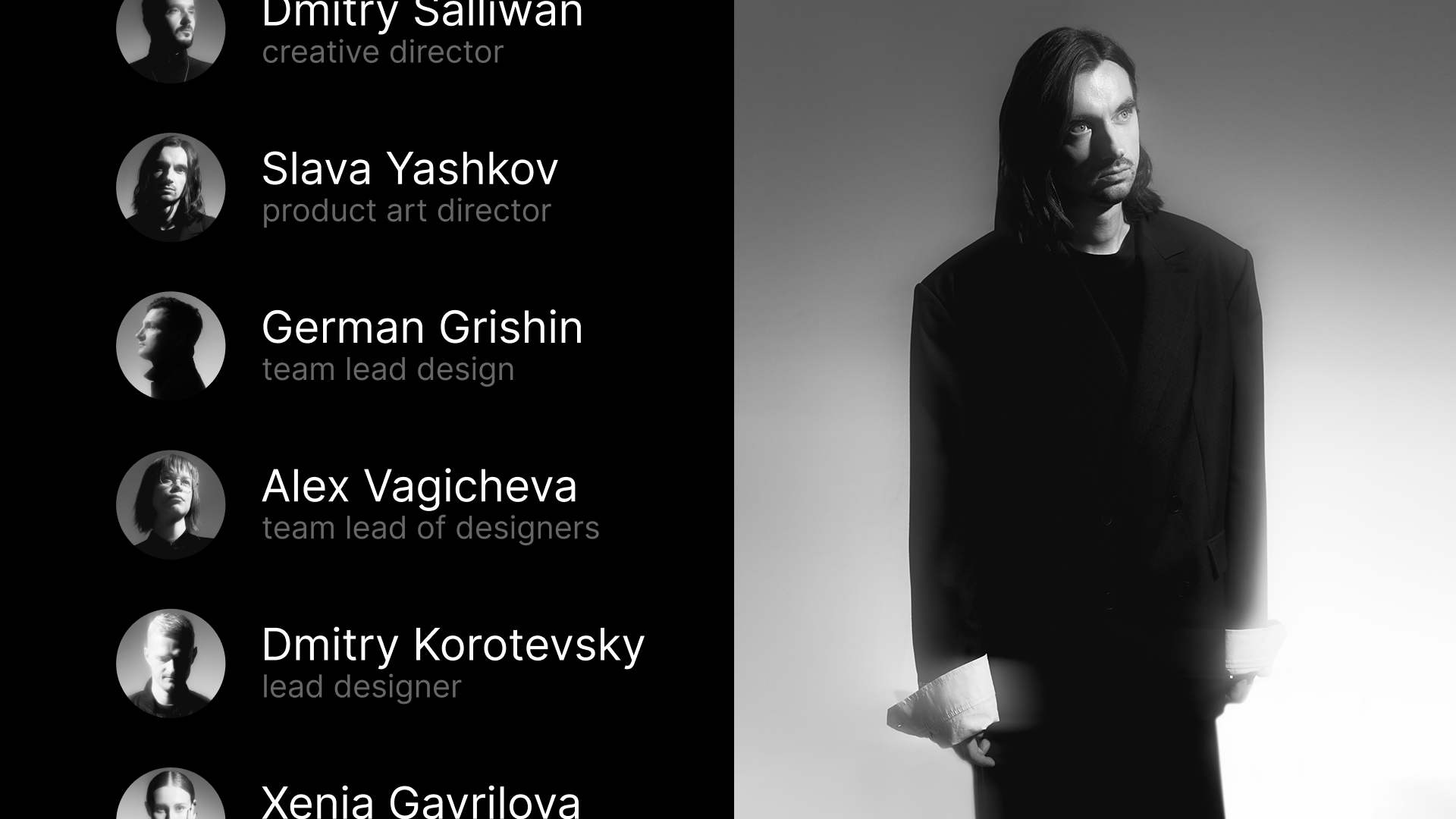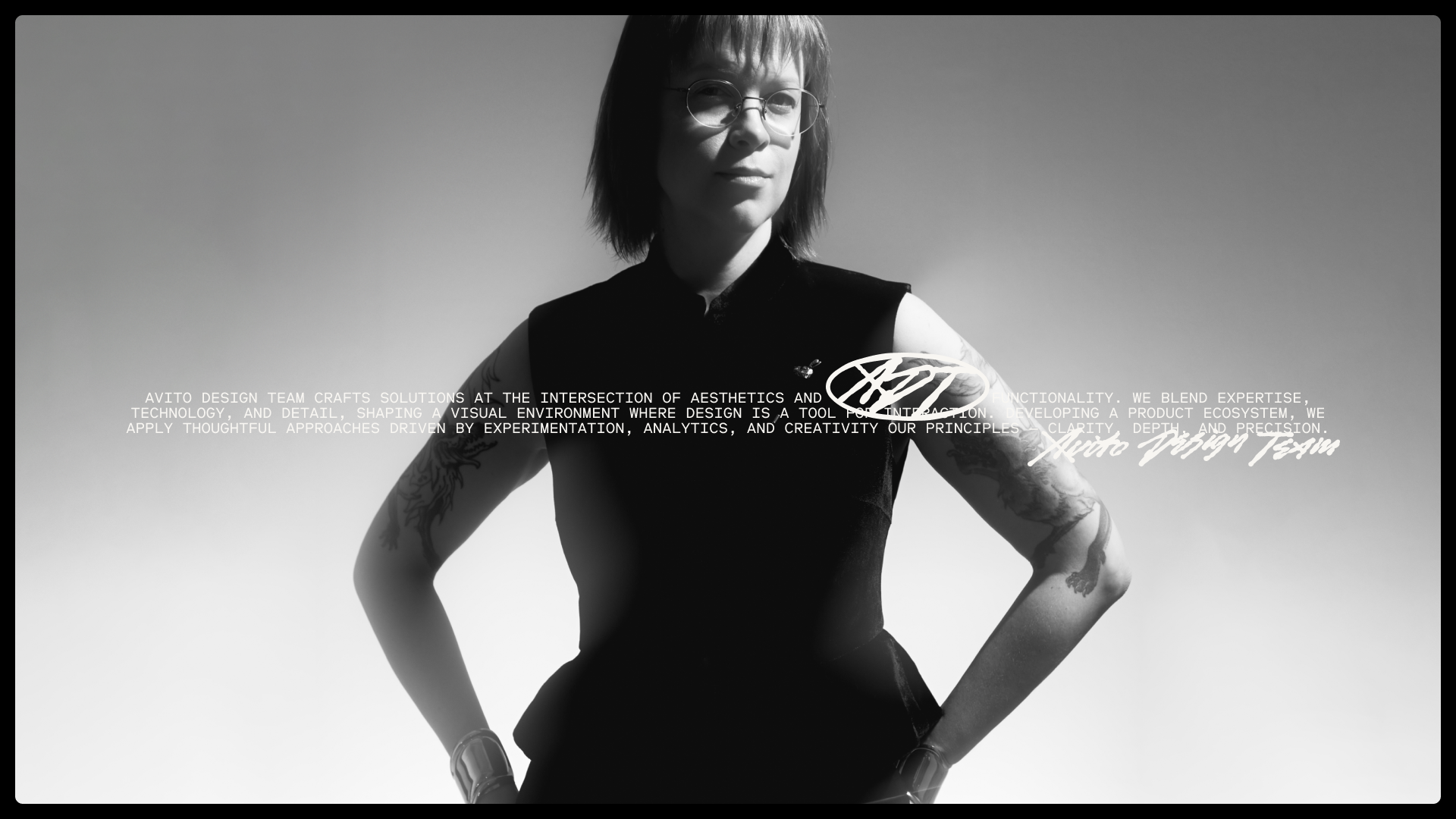 Съёмка стала не просто частью визуальной коммуникации, а важным элементом культуры команды. Чёрно-белые портреты передают характер каждого участника и ощущение единства «дизайн-гильдии» — сообщества профессионалов, стоящих за визуальной коммуникацией Авито.