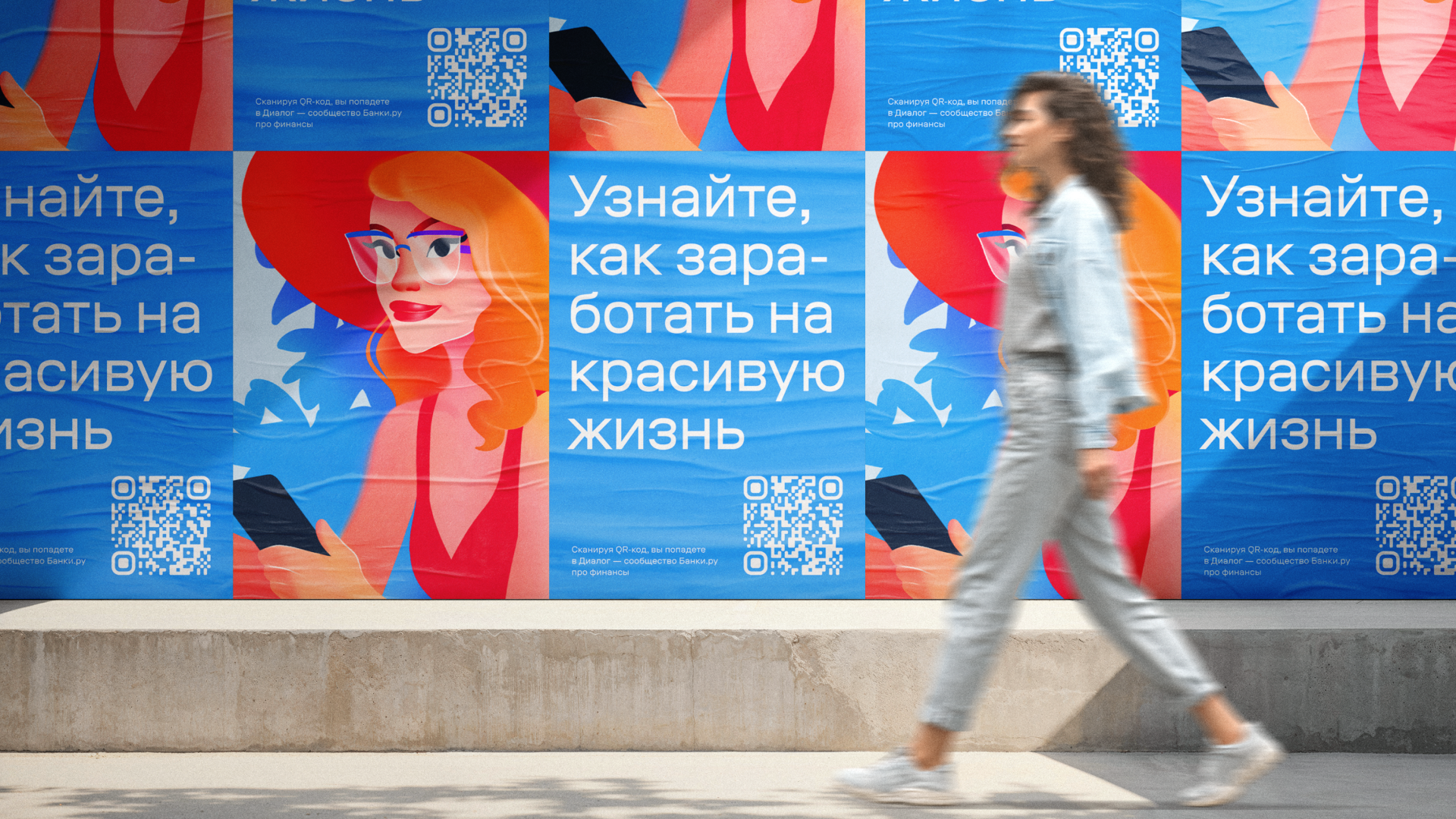 Нам нужно было разработать визуальный стиль иллюстраций, который бы подчёркивал особенный дух Диалога. Стиль должен встраиваться в общий визуал Банки.ру и отличаться от похожих решений: Т-Ж, Сравни, Финуслуги.