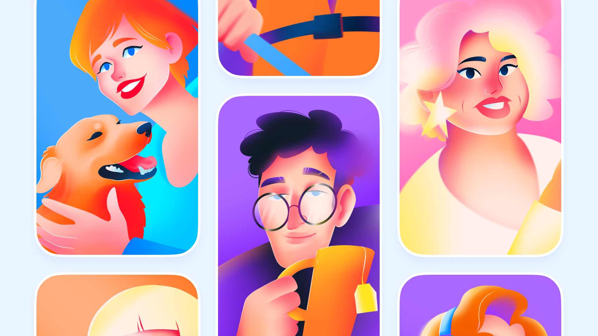 Формы в иллюстрации состоят преимущественно из мягких и округлых силуэтов без сильной детализации. Так мы делаем визуал дружелюбным и открытым.