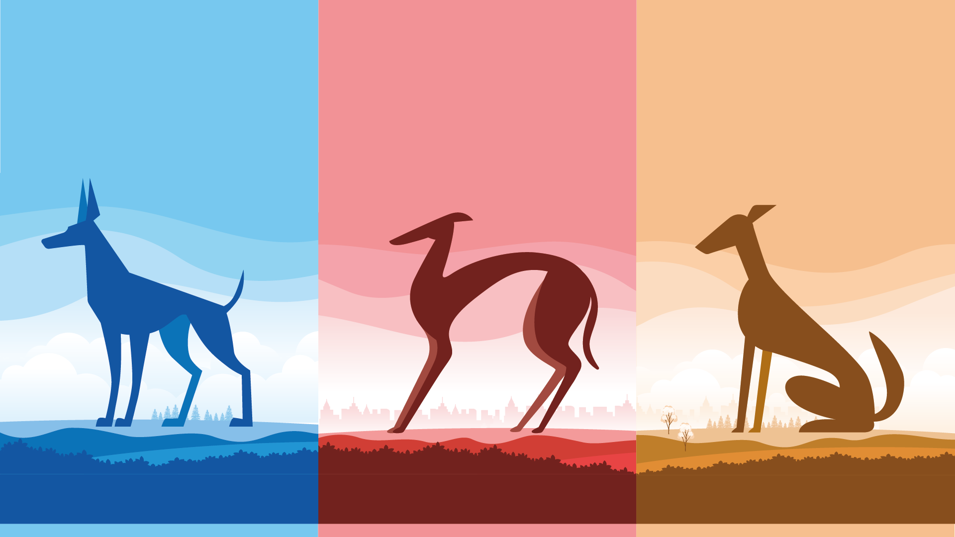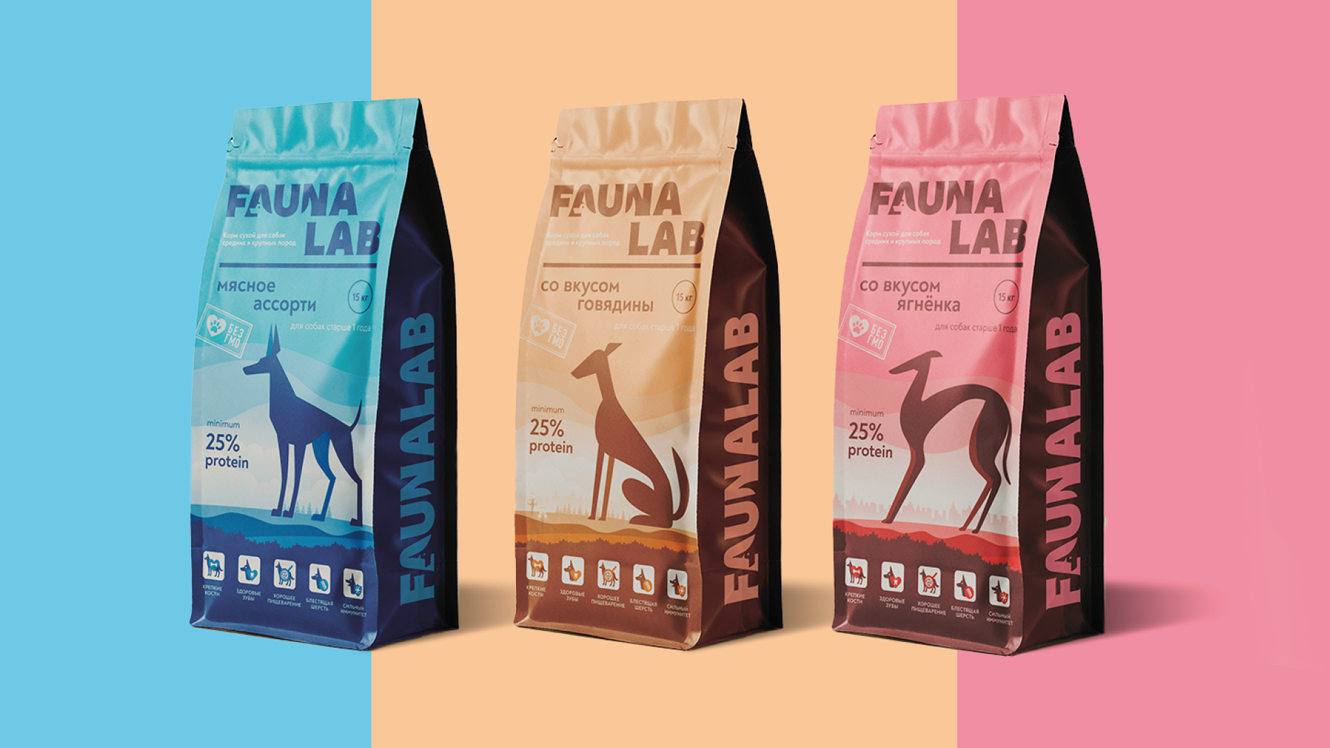 Конкуренты используют реальные фотографии животных, а мы решили пойти обратным путем. Фирменные иллюстрации местами футуристичны и деформированы, но при этом каждый хозяин узнает породу своего питомца.