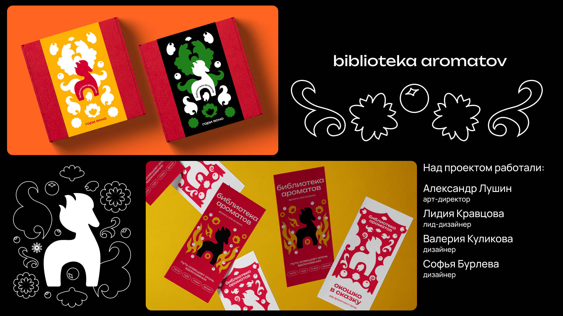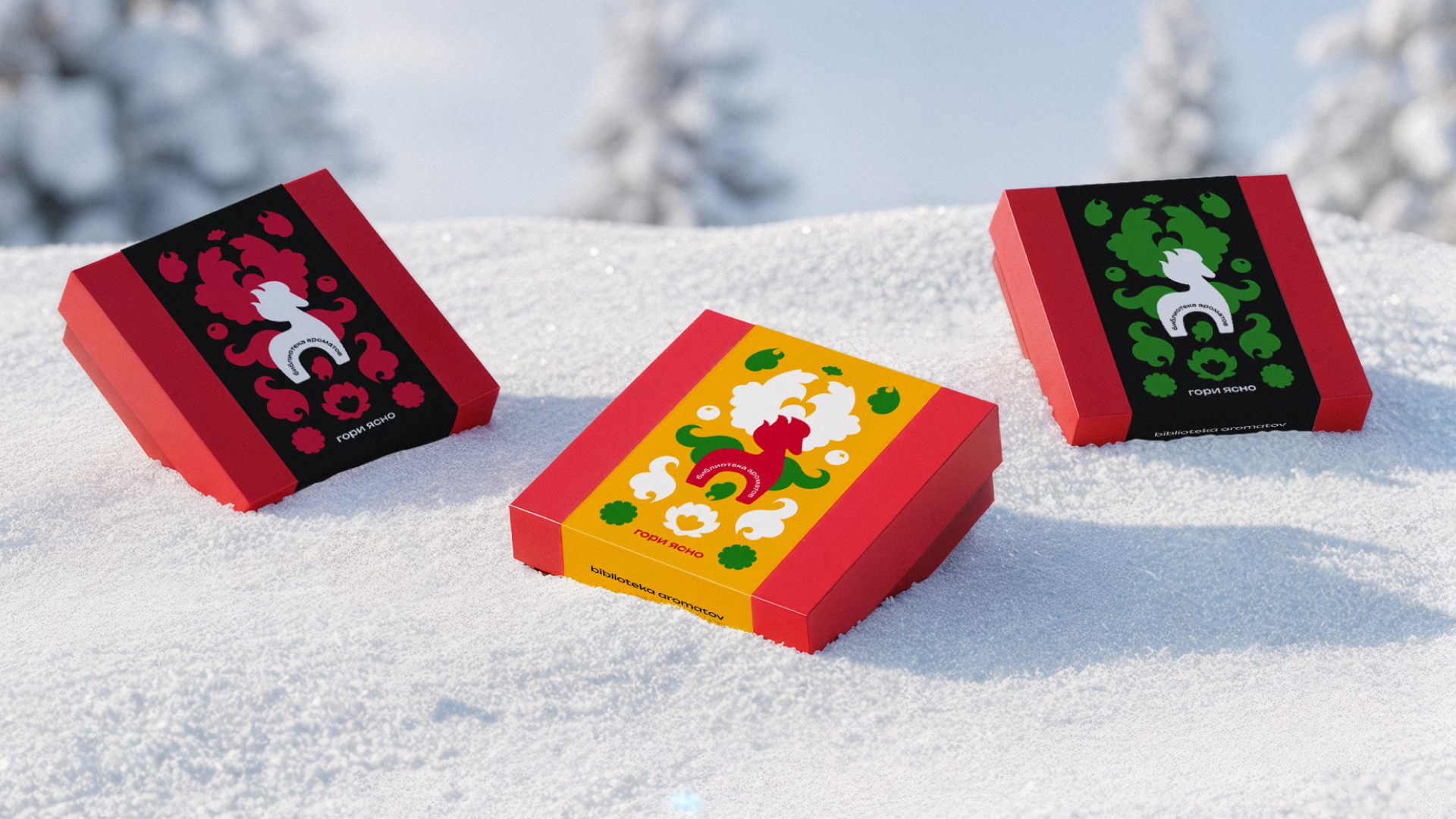 «Гори ясно» — сезонный визуальный стиль российского парфюмерного бренда biblioteka aromatov, созданный для праздничного оформления в 2025/26.
