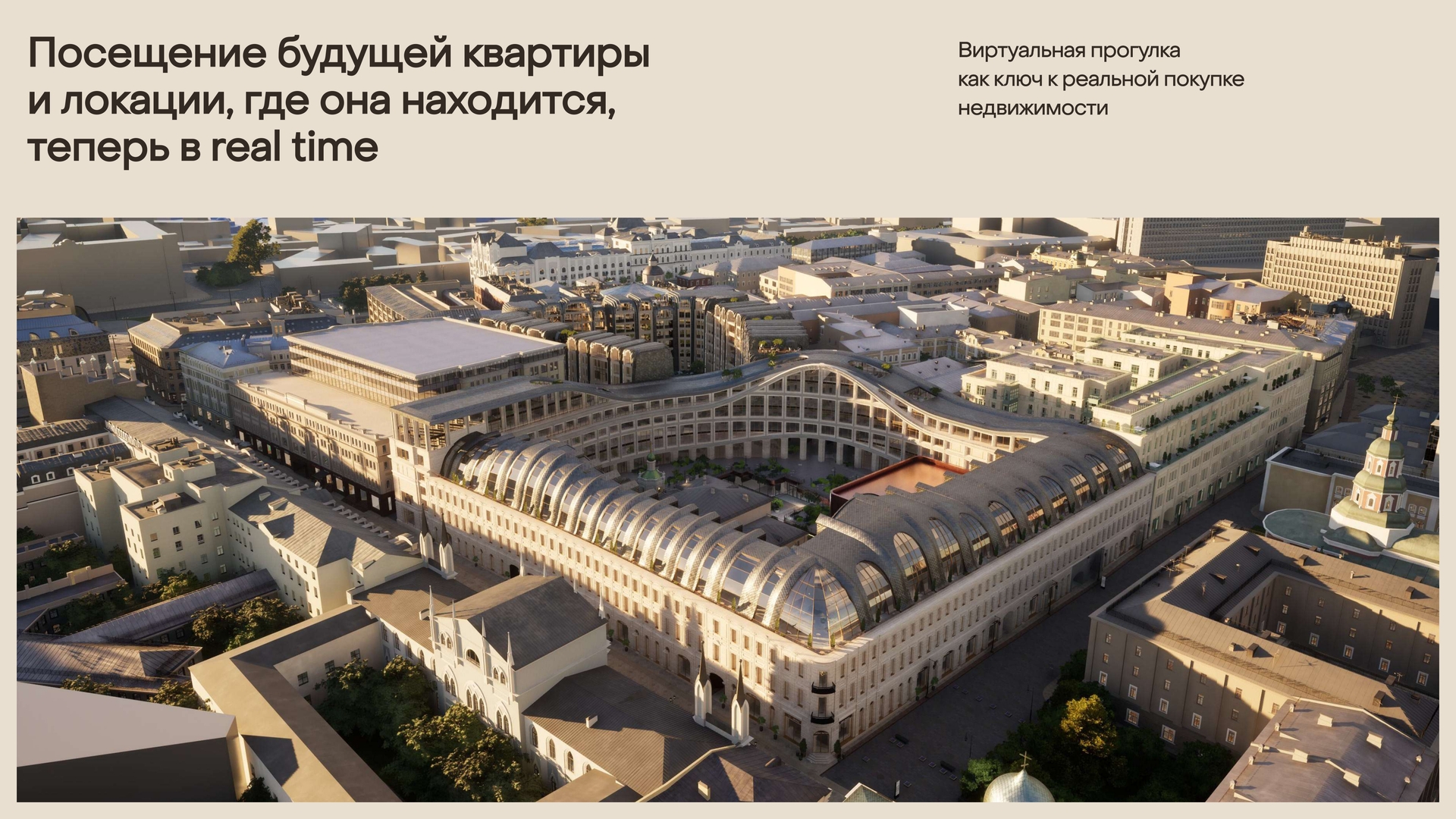 Свобода перемещения: можно зайти в каждую квартиру, осмотреть ЖК из любой точки, пройти «пешком» по самому центру Москвы от Арбата до Никольской улицы.