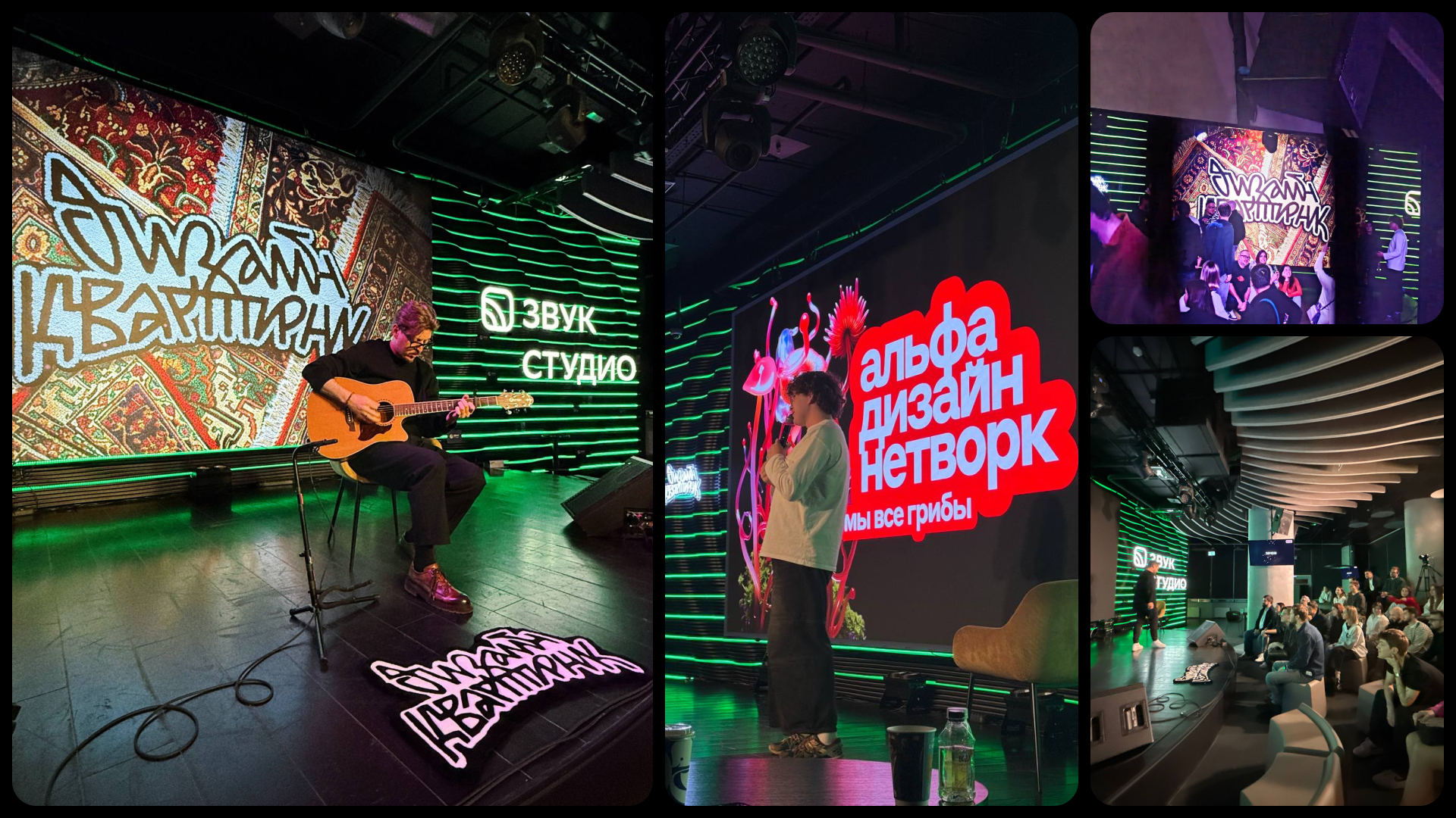Первый дизайн-квартирник был в Сбере, следующие мероприятия подхватили дизайн-команды ТБанка, Авито, Озон и другие участники рынка, захватив с собой айдентику, вывеску и ковёр.