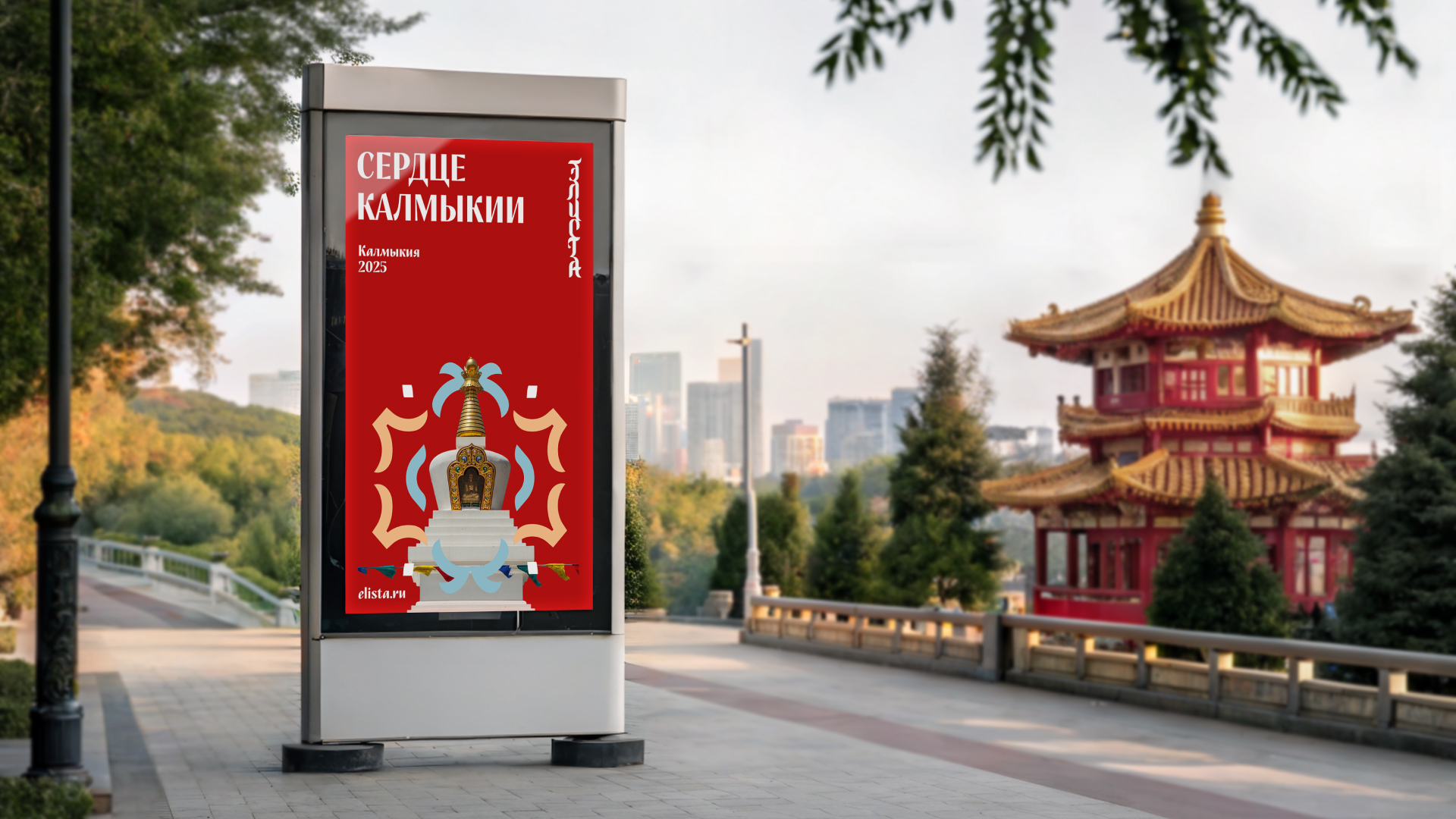 Айдентика Элисты - столицы Калмыкии, единственного буддийского региона Европы, опирается на леттеринг, вдохновлённый "тодо бичиг" — традиционной вертикальной калмыцкой письменностью. Логотип и шрифтовая композиция передает ритм, плавность и пластичность письма, объединяя исторические коды и современный визуальный язык. Каждая буква рассматривается как самостоятельная графическая форма: её штрихи, изгибы и пропорции несут культурный смысл и органично включаются в общую визуальную систему города. Народные орнаменты, изначально несущие символический смысл, органично вплетаются в графику букв, превращаясь в элементы айдентики. Пластика штрихов имитирует письмо пером — живое, динамичное, рукотворное. В этой системе традиция и современность гармонично взаимодействуют, создавая визуальную среду, в которой культурный код Элисты выражен средствами актуального дизайна.