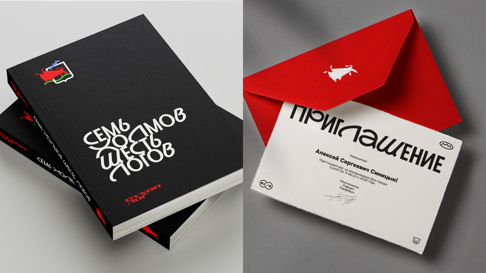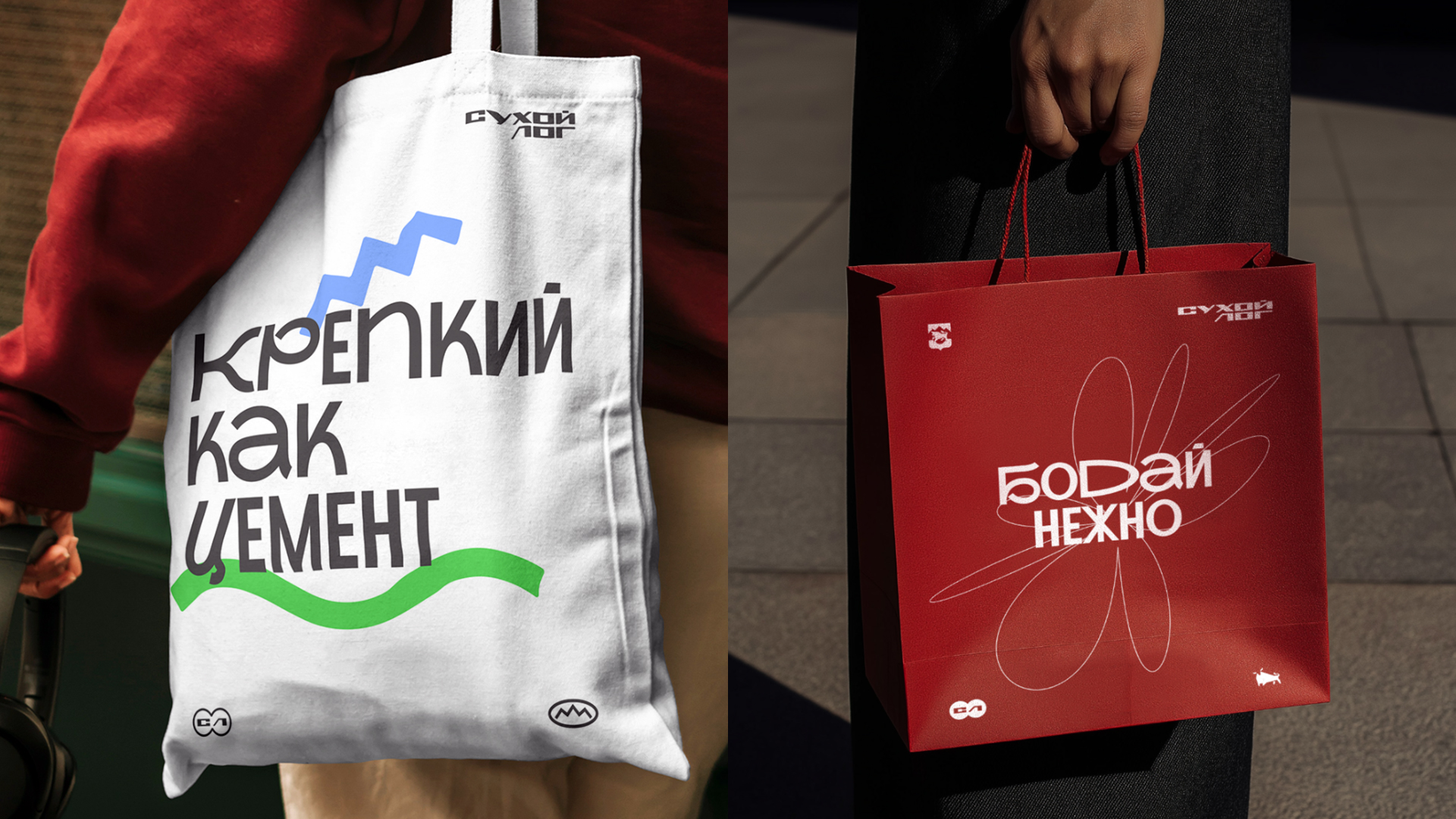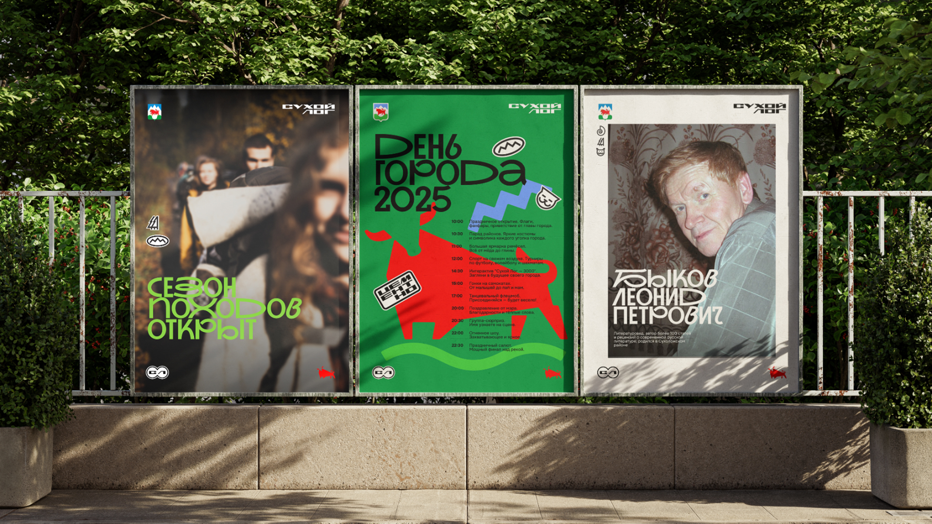В айдентике туристического бренда Муниципального округа Сухой Лог любопытный красный бычок перекочевал из официального герба в логотип, а надпись «Сухой Лог» бережно перенесена с узнаваемой стелы при въезде в Сухой Лог. Также в логотипе легко угадывается образ скалы «Три сестры» и зеленые лога-холмы. Дополнительными элементами стиля стали иконки-стикеры в которых любой житель города узнает знакомые образы: самый высокий мост на Урале, аммониты, беседка санатория «Курьи», динозавр и даже котики, которых очень любят жители города. Специально для Сухого Лога был адаптирован акцидентный шрифт, разработанный агентством REDKEDS, приобретя новое название «Слог».