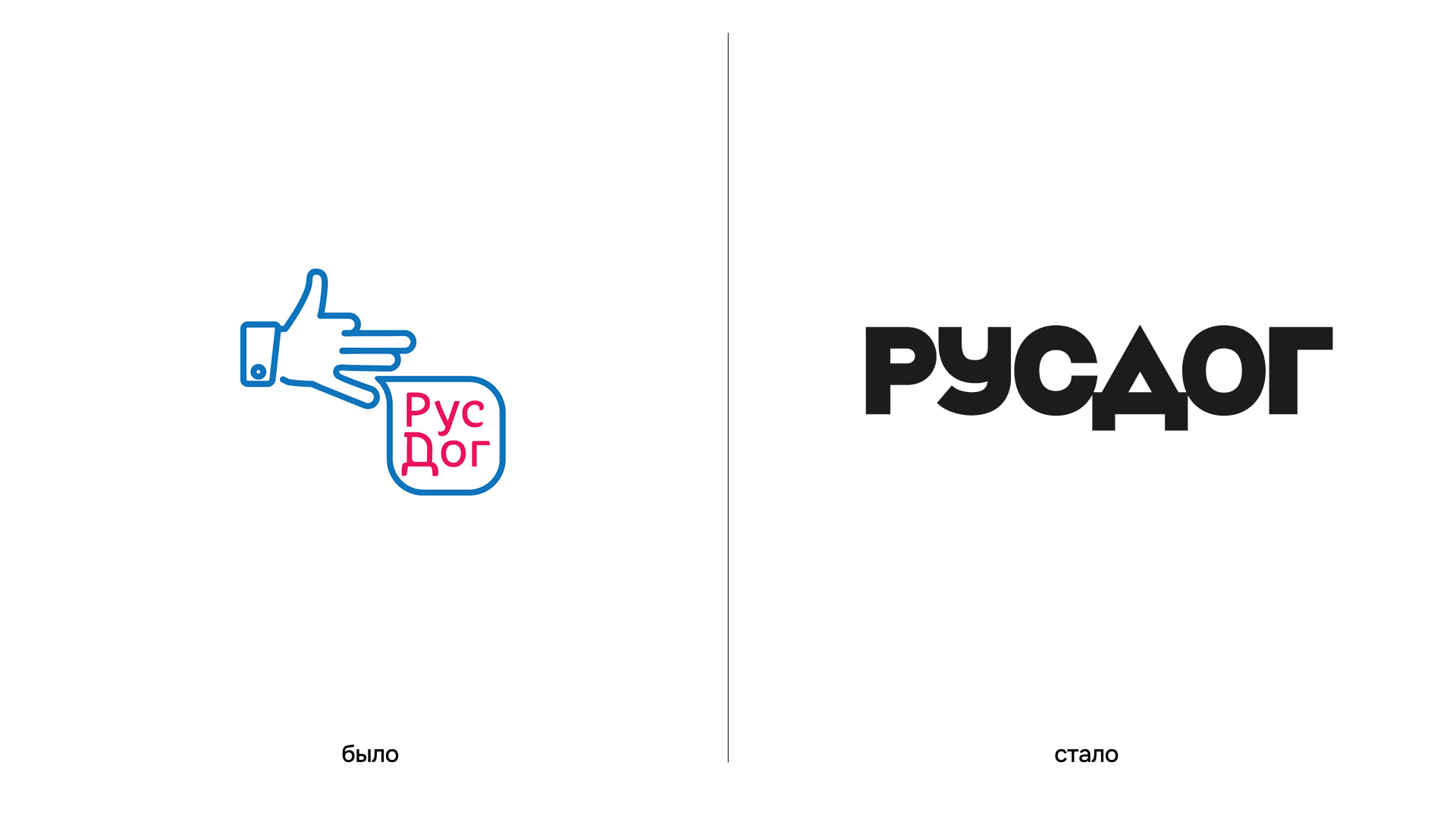 Логотип — леттеринг, намеренно без навязчивых "фишек", ради искренней интонации. Акцентная деталь — буква «Д» наивной формы, напоминает крышу дома и конуры —символ защиты, заботы и сообщества. Она же напоминает стрелку — образ действия и инициативы. Логотип обыгрывает утилитарную прямолинейность лого “организаций”, но с тёплым, человечным оттенком. "РУСДОГ" и звучит “угловато” и поэтому стремились чтобы форма и звучание логотипа резонировали. Чередование углов и более мягких форм создаёт не умилительное, но доброе настроение.
