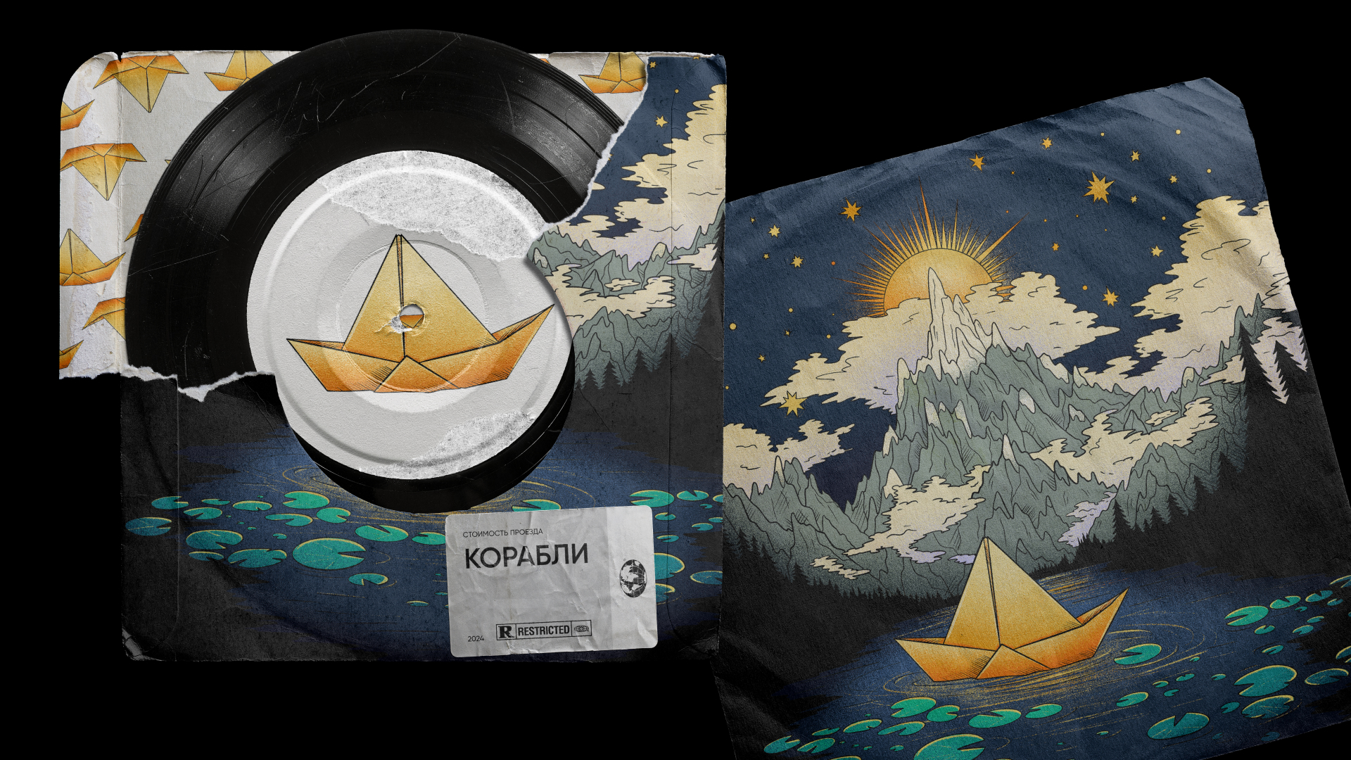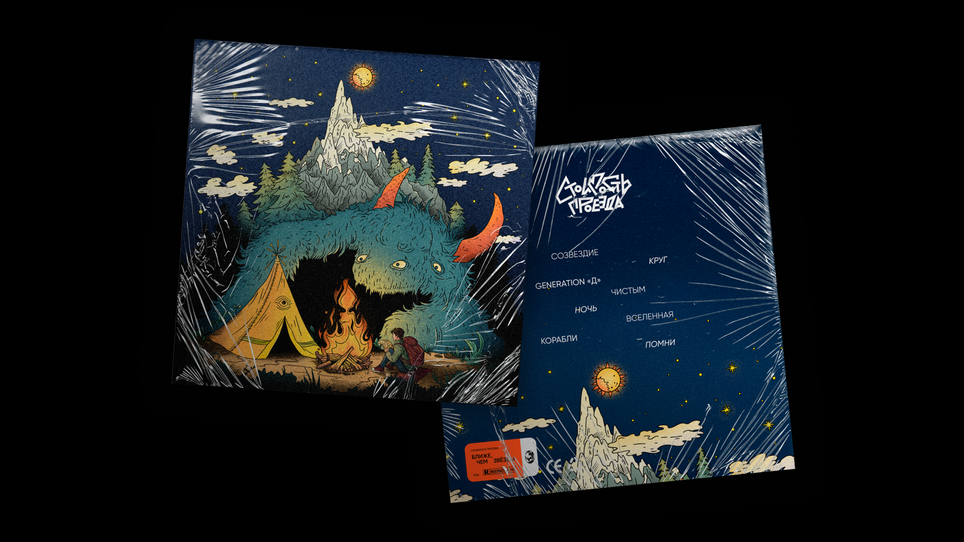 Дизайн строился через музыку. Вместе с солистом мы погружались в звучание и атмосферу альбома, чтобы найти стиль, передающий настроение треков. Вдохновение черпали из советской мультипликации и детских книг — знакомая эстетика в новой поэтичной обертке.