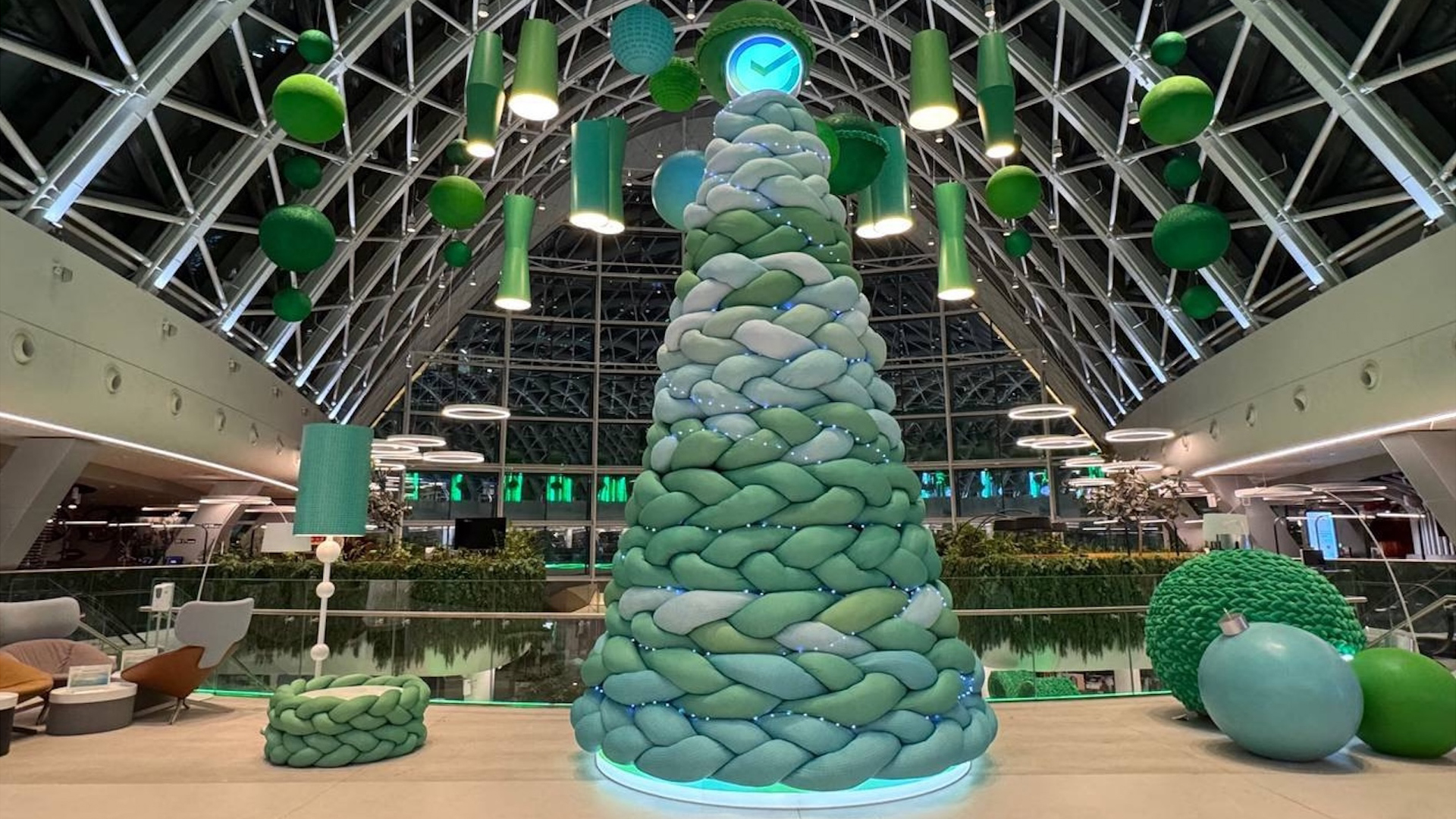 К Новому году 2024 мы запустили проект «(С)Вязано» — особую концепцию праздничного оформления офисов Сбера. Для нас Новый год — не просто календарная дата, а момент, когда сотрудники особенно нуждаются в поддержке, внимании и ощущении единства. Конец года всегда связан с повышенной нагрузкой, дедлайнами и усталостью. И именно в это время важно подарить людям атмосферу тепла, уюта и заботы.