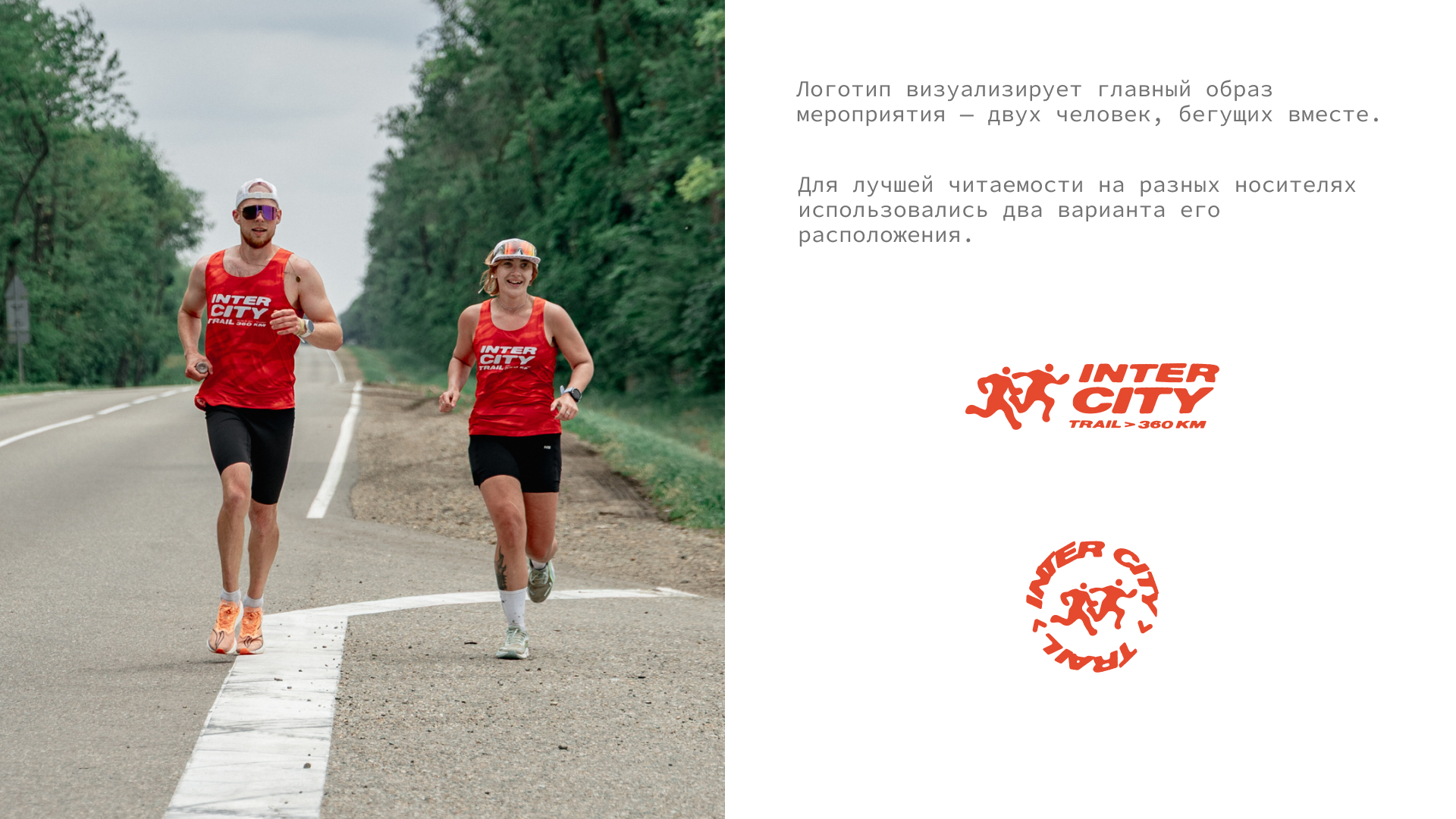 Создано оформление, опирающееся на прямые ассоциации с тематикой мероприятия, чтобы обеспечить максимальную ясность восприятия. Основные цвета — белый (добро, чистота) и красный (сила, донорство). Логотип визуализирует главный образ мероприятия — двух человек, бегущих вместе. Для динамики в заголовках выбран яркий гротеск.