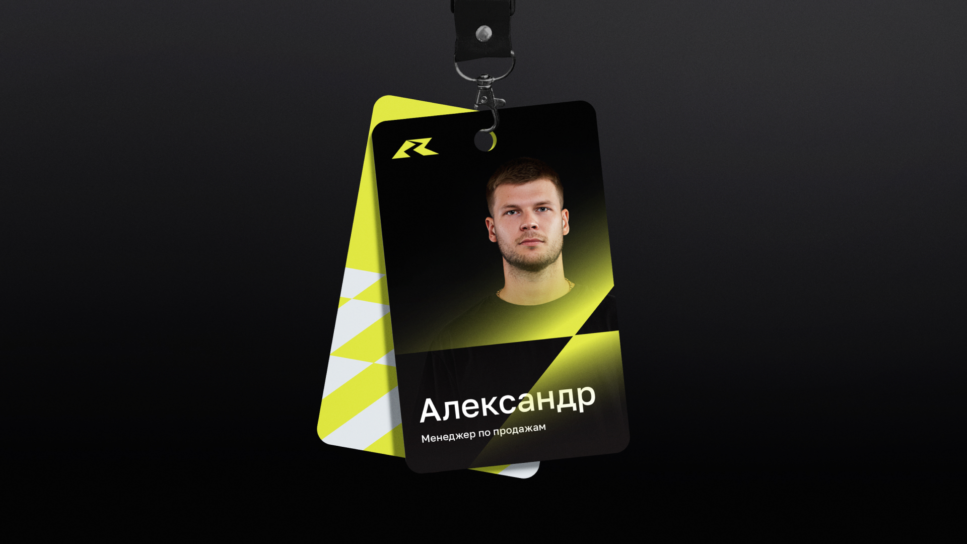 Основой фирменного стиля стала диагональная плашка — метафора молнии и движения, отсылающая к логотипу и формирующая узнаваемый паттерн. Он стал ядром визуальной системы, которая гибко масштабируется на любые носители.