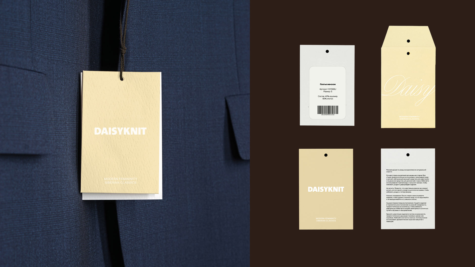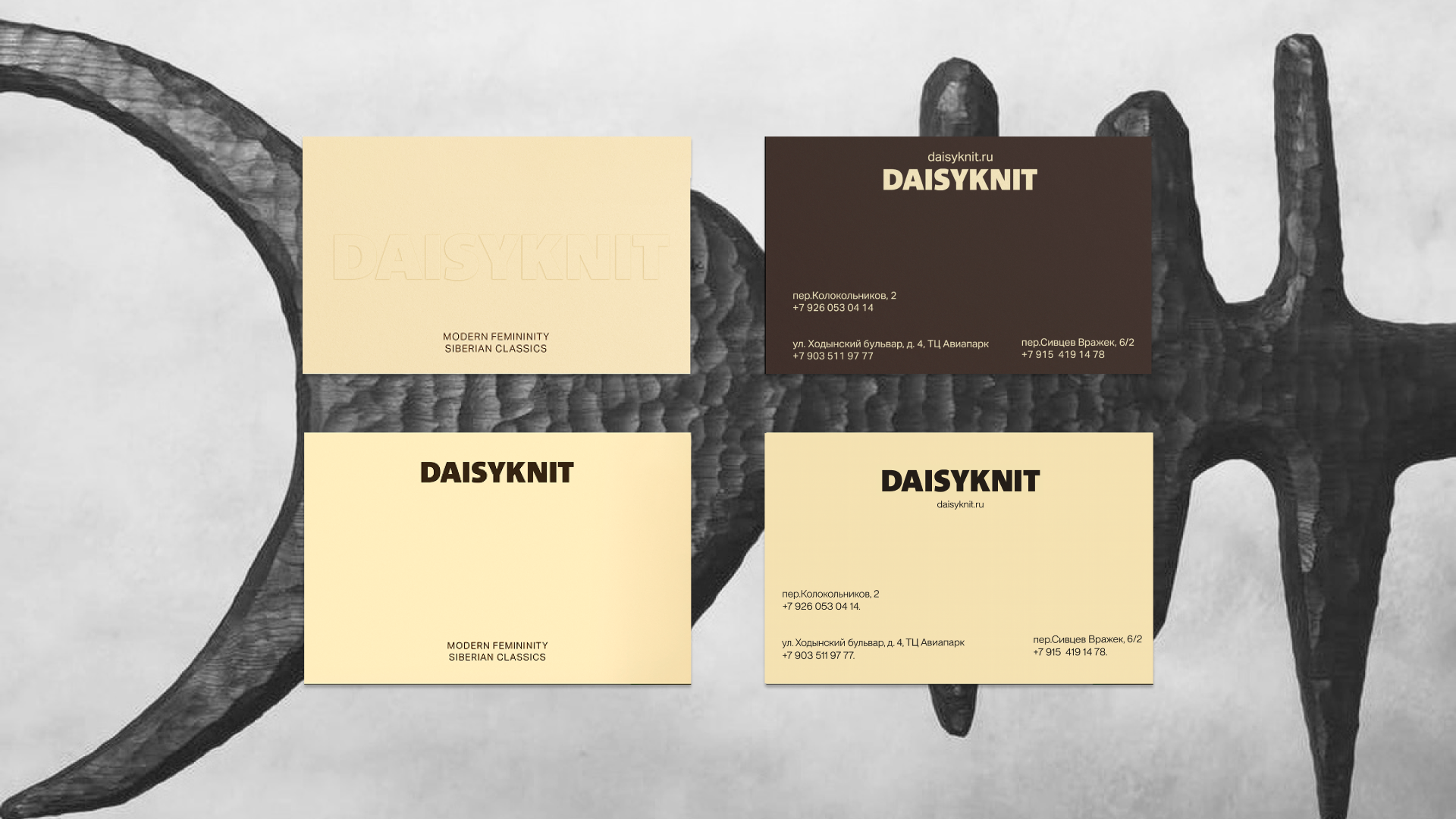 Айдентика для бренда Daisyknit вдохновлена Сибирью и её культурным наследием. Для нас было важно не просто разработать визуальный язык, но и передать атмосферу.