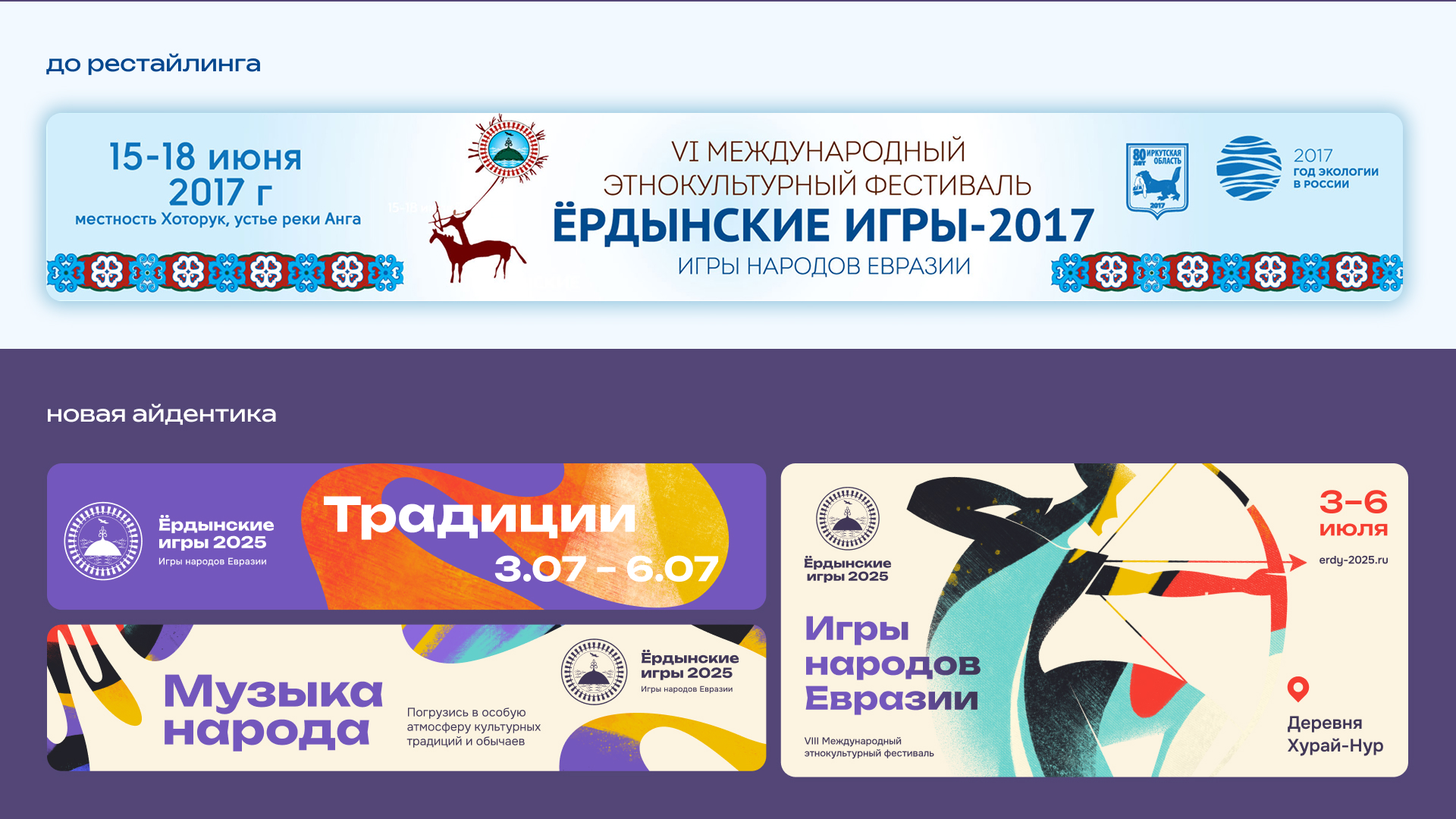 Проработка визуальных идентификаторов, иллюстраций, промптов, фотостиля и носителей помогла сделать айдентику Ёрдынских игр живым визуальным языком, с помощью которого традиция продолжает говорить — смело, современно и по-настоящему. Она не застывает в стереотипах, а двигается вместе с людьми, ветром и временем.