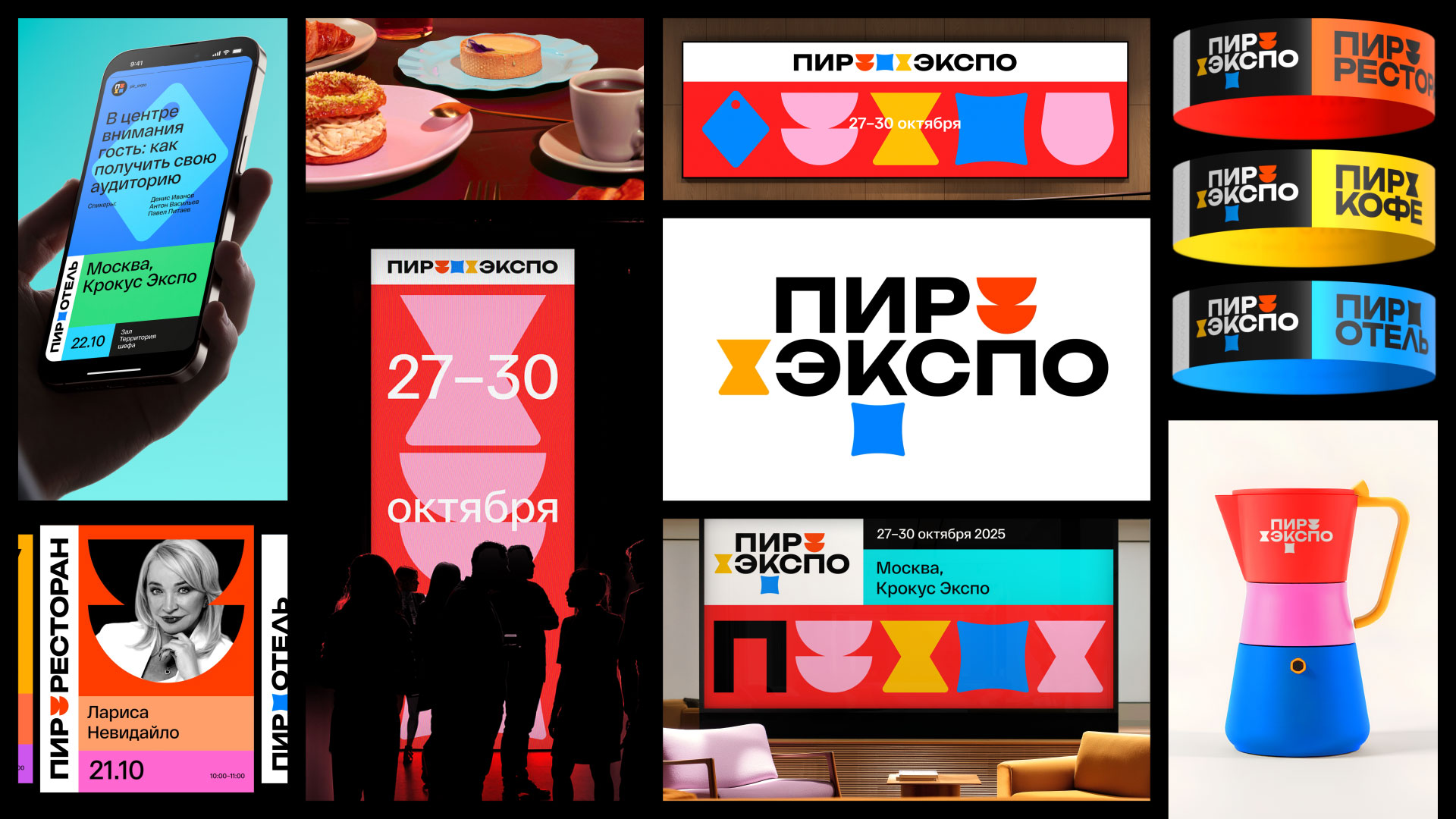 ПИР Экспо — крупнейшее отраслевое событие для индустрии HoReCa в России, собирающее десятки тысяч участников и сотни компаний ежегодно. После 28 лет проведения организаторы обратились в агентство LINII для создания единой и долговечной дизайн-системы, которая бы объединила направления «ПИР—Ресторан», «ПИР—Кофе» и «ПИР—Отель» в один бренд.