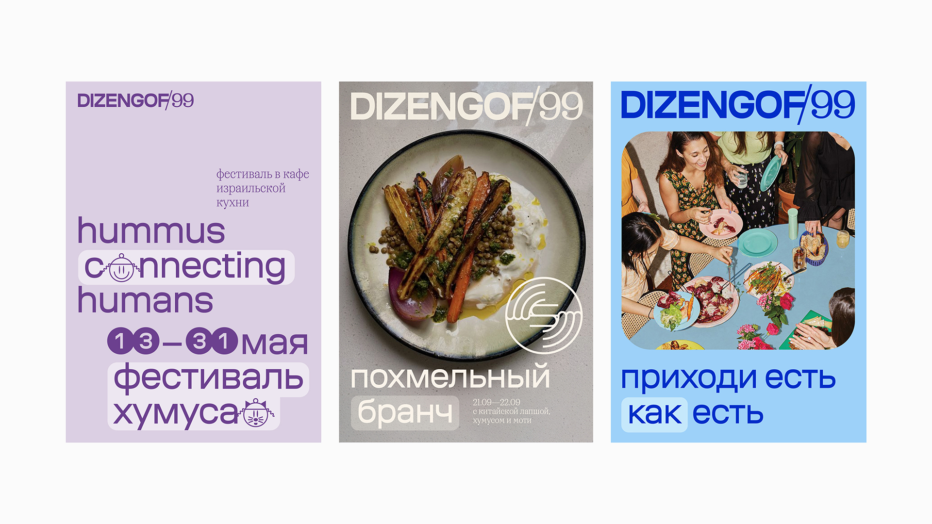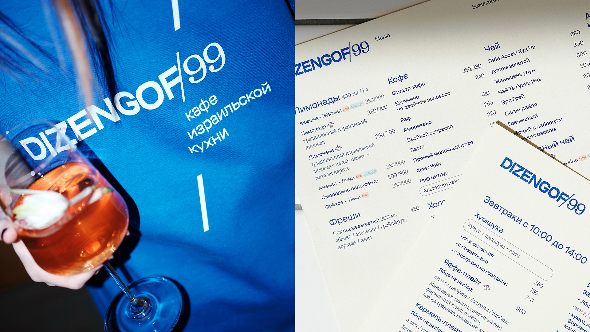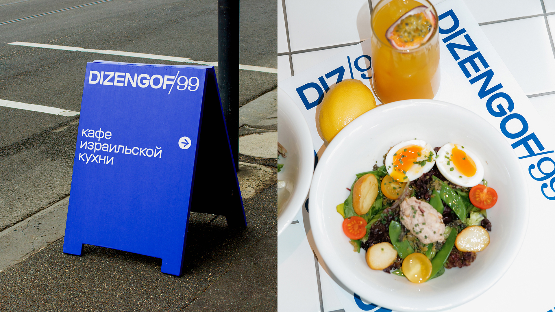 Для сети кафе израильской кухни Dizengof/99, которая уже объединяет шесть точек в Москве и Петербурге, мы разработали обновленную айдентику, отражающую ее ценности и атмосферу.