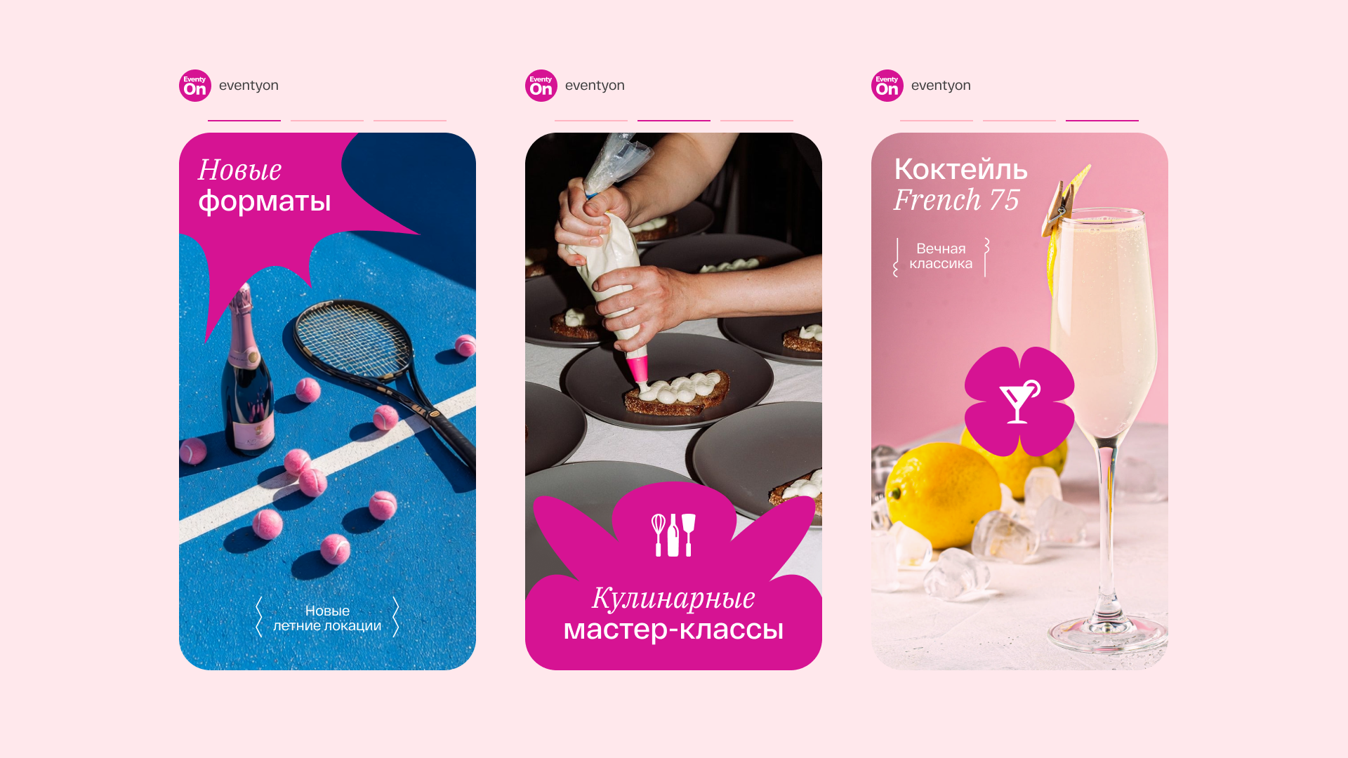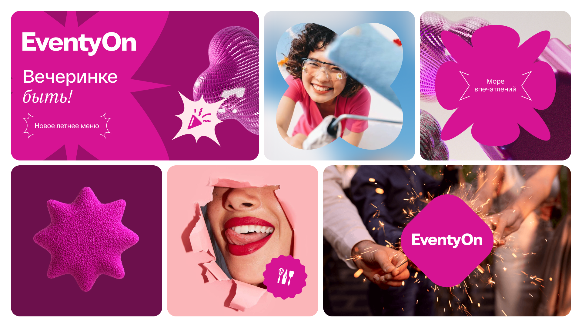Идея бренда отражает то, чем по-настоящему гордится EventyOn — искренними эмоциями своих клиентов. Именно они вдохновили визуальный подход — необычные формы, буквально говорящие, что каждое мероприятие от EventyOn — это «всплеск эмоций».