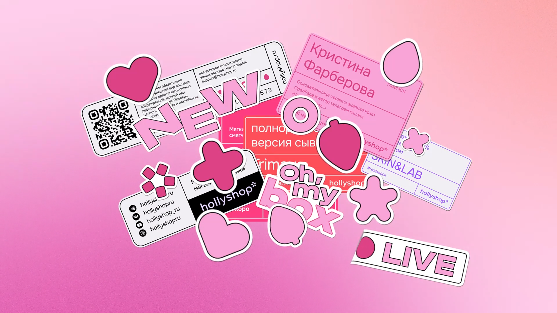 За десять лет работы Hollyshop стал крупнейшим интернет-магазином корейской косметики в стране. К юбилейной дате компания решила обновить фирменный стиль, чтобы говорить на одном языке с аудиторией и визуально встроиться в категорию современного женского e-com. Был разработан новый логотип с ненавязчивой отсылкой к стране-производителю ассортимента Hollyshop. Тематические иконки и стикеры, фирменный паттерн, цветовая палитра передают дружелюбный характер бренда — эксперта в своей области, а лаконичность дизайна служит восприятию бренда как более премиального.