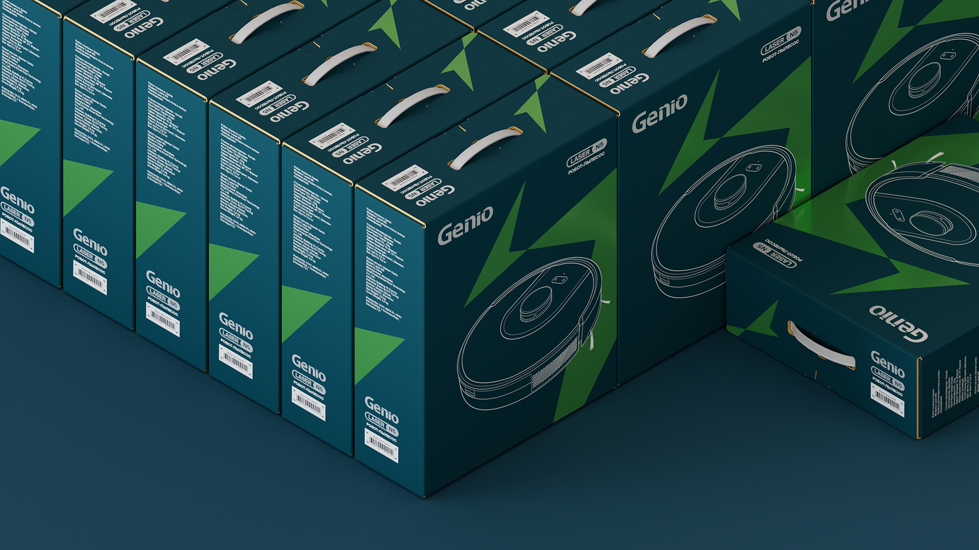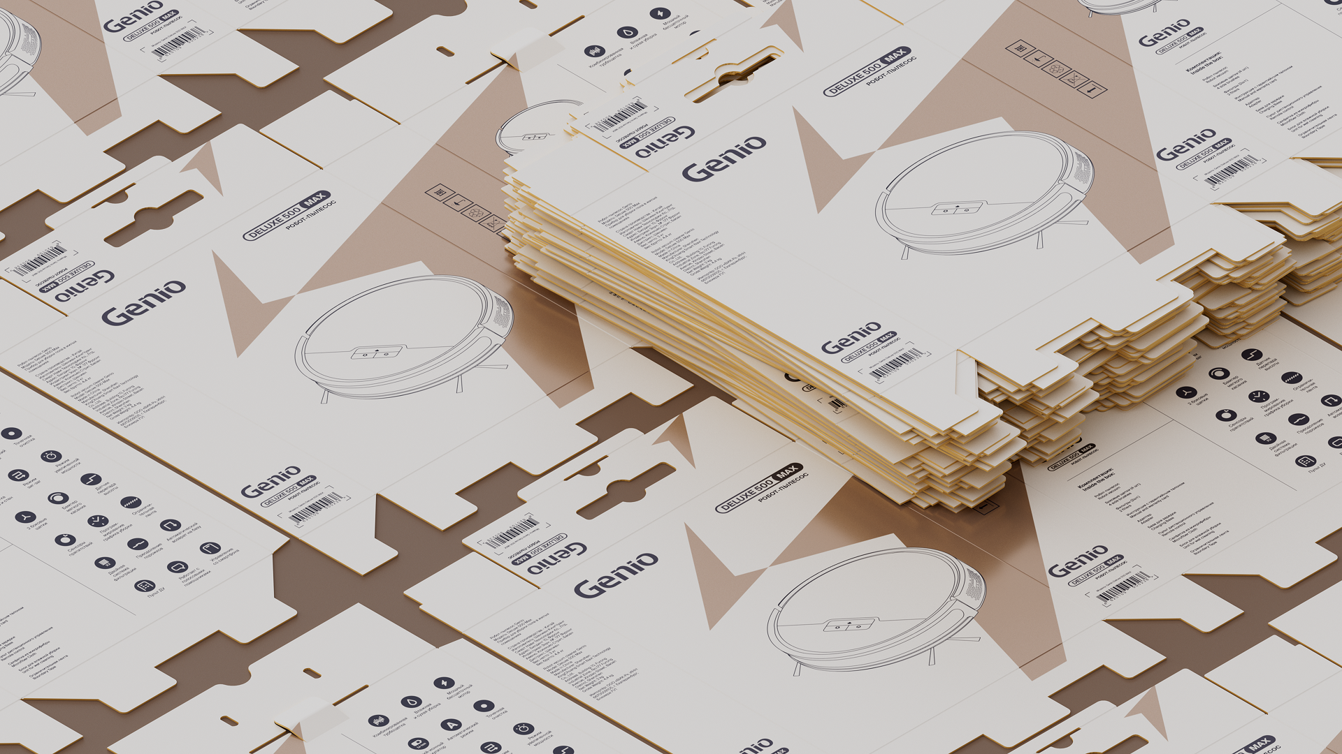 Я создал новый стиль упаковки продукции Genio. Технологии, которые освобождают драгоценное время своих владельцев, выполняя рутинную домашнюю работу, уже здесь. Geniaльное просто!