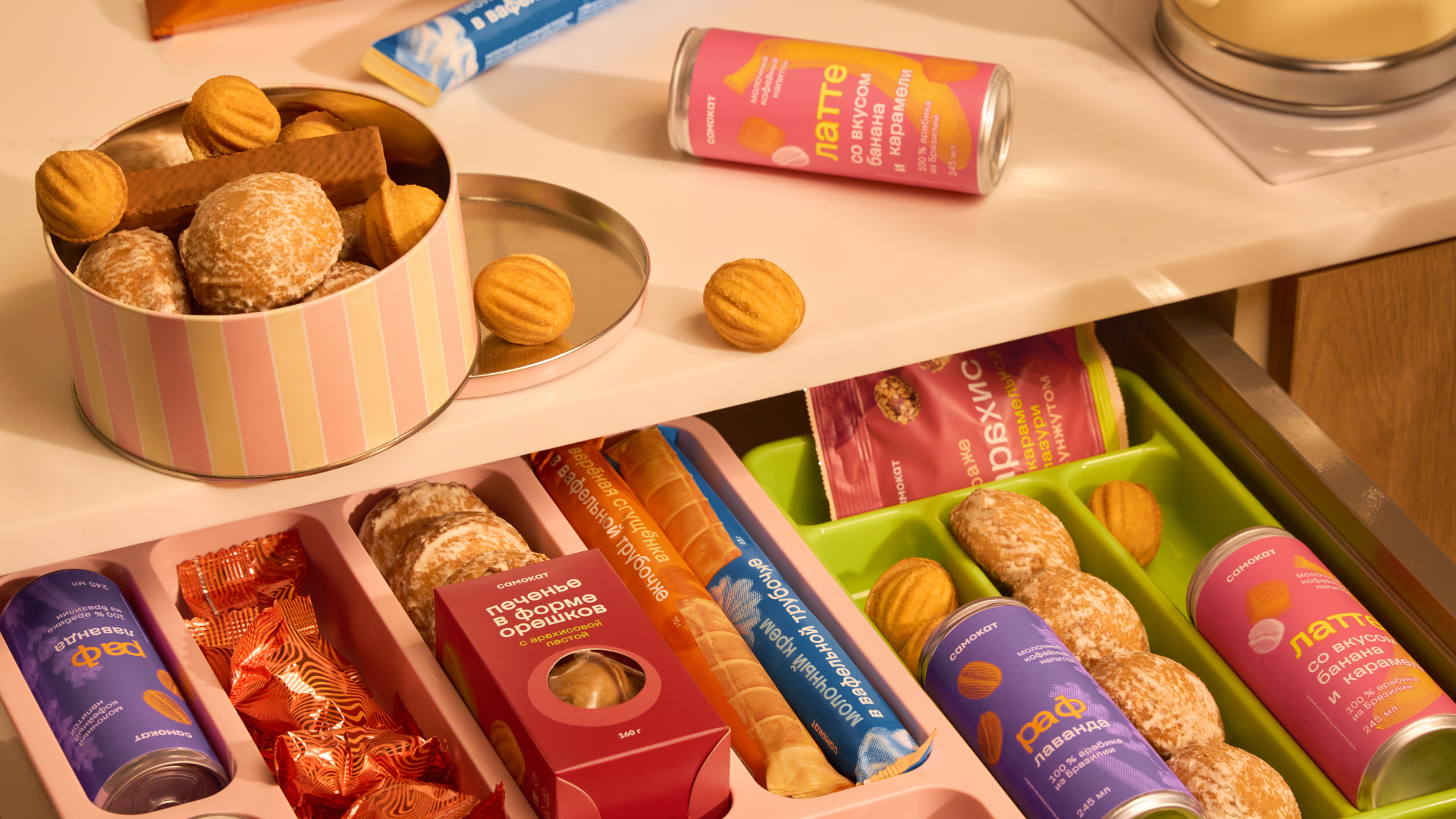 Собственная торговая марка насчитывает около 2000 товаров в разных категориях. В 2025 году мы обновили одну из ключевых категорий товаров — импульсную. Предыдущий дизайн оказался сложно маштабируемым: ограничения по цветам и стилю иллюстраций мешали развитию, а самим упаковкам, по отзывам пользователей, не хватало эмоциональности.