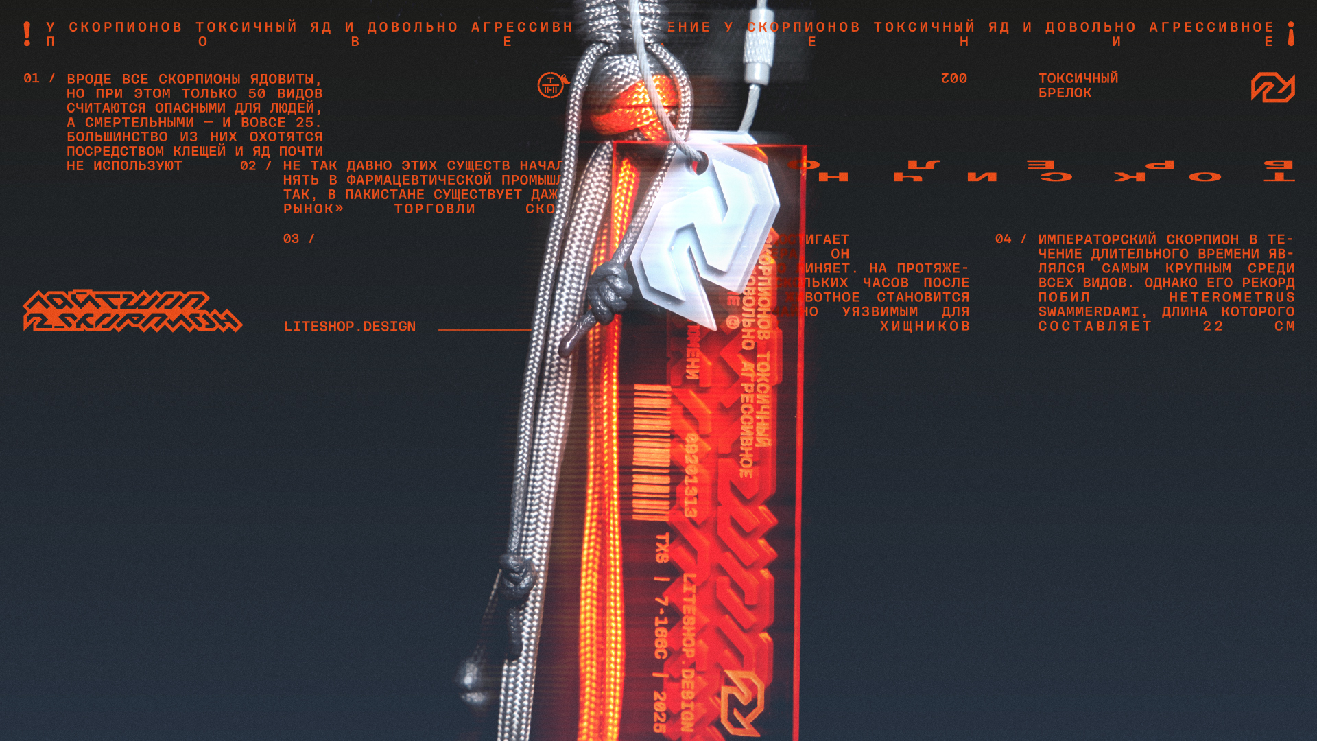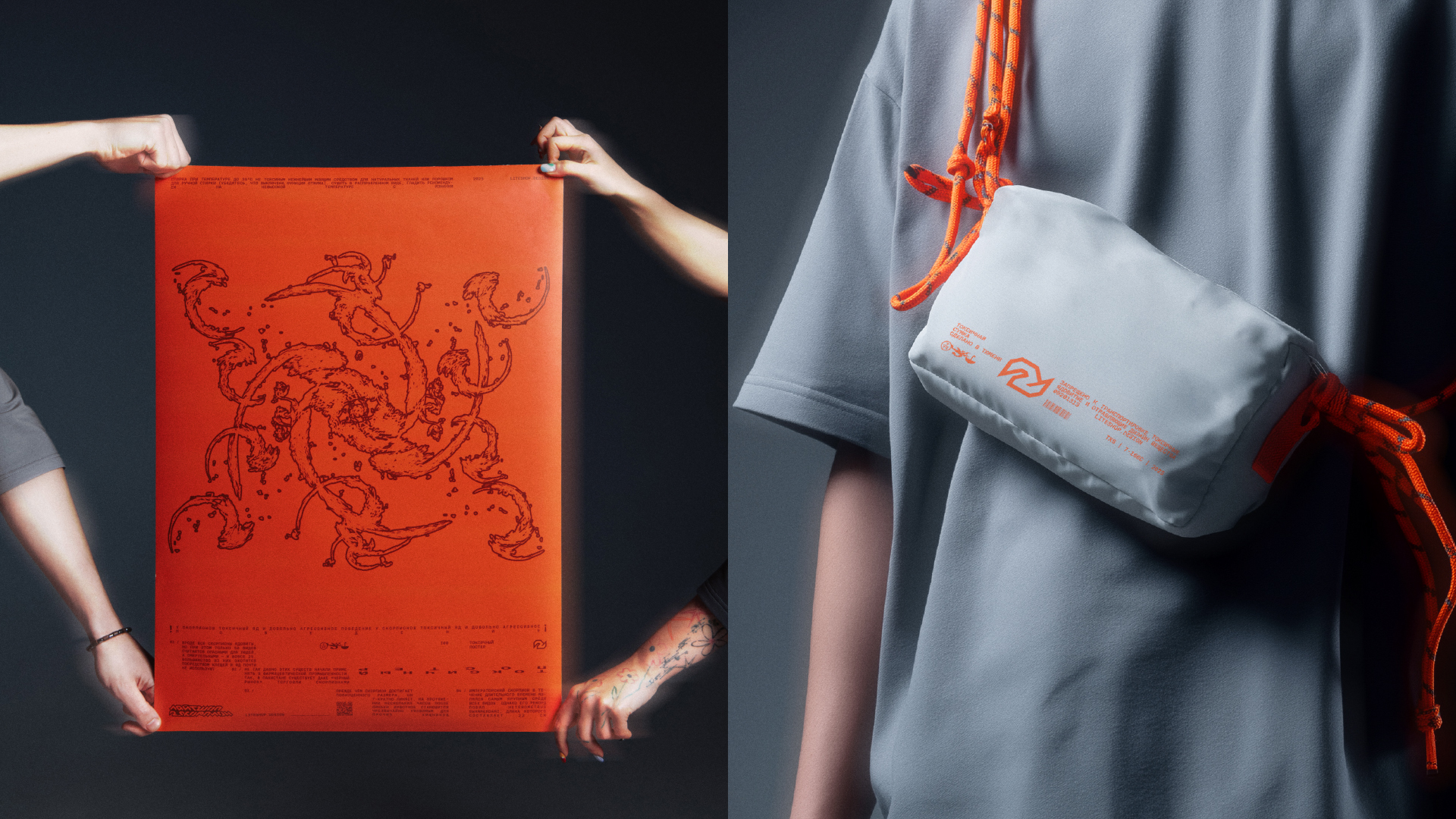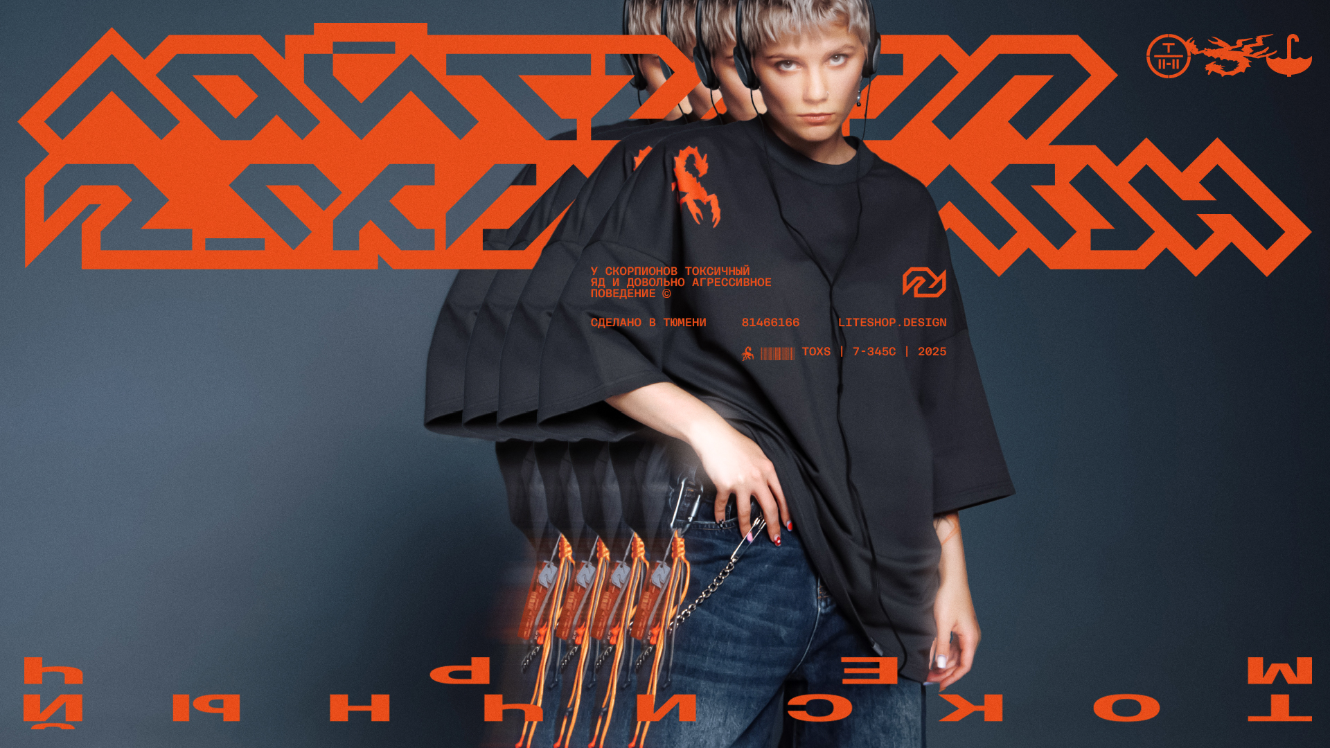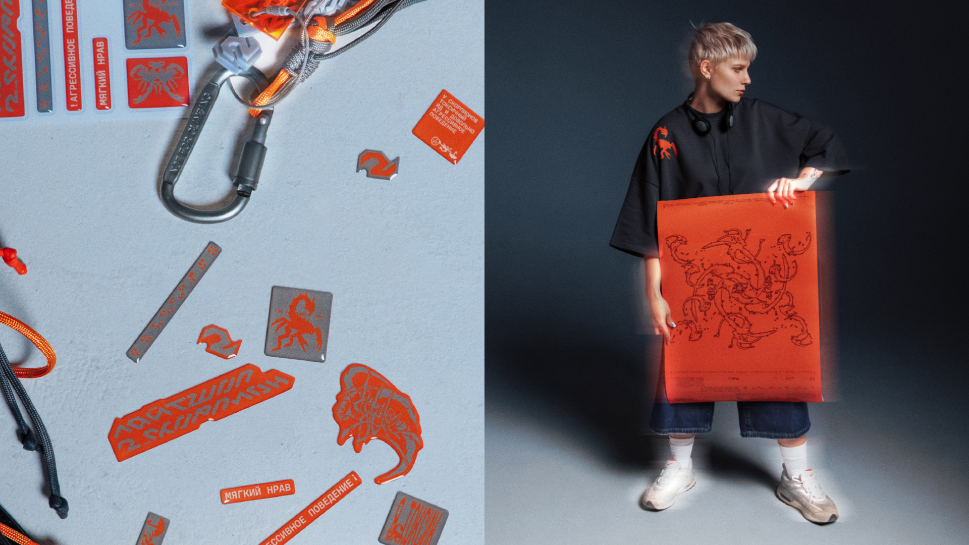 Центральный символ всей концепции — скорпион: агрессивный, ядовитый, яркий, способный защитить себя от подобной ему внешней среды. Копирайты и материалы строятся на противоречивости и контрастах, позволяющих каждому транслировать свой глубокий внутренний мир через внешнюю агрессивность.